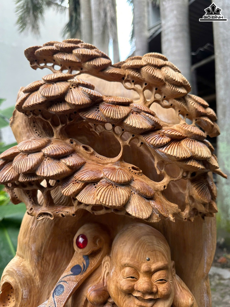 Tượng Phật Di Lặc Ngồi Gốc Tùng Gỗ Ngọc Am Cao 78 Ngang 48 Sâu 22 (cm) - 24kg