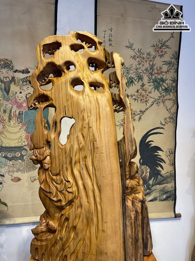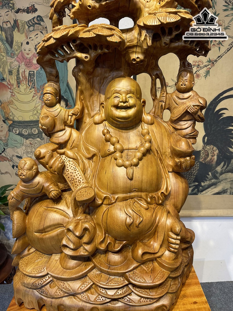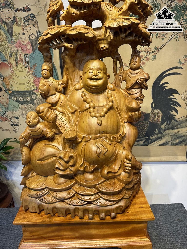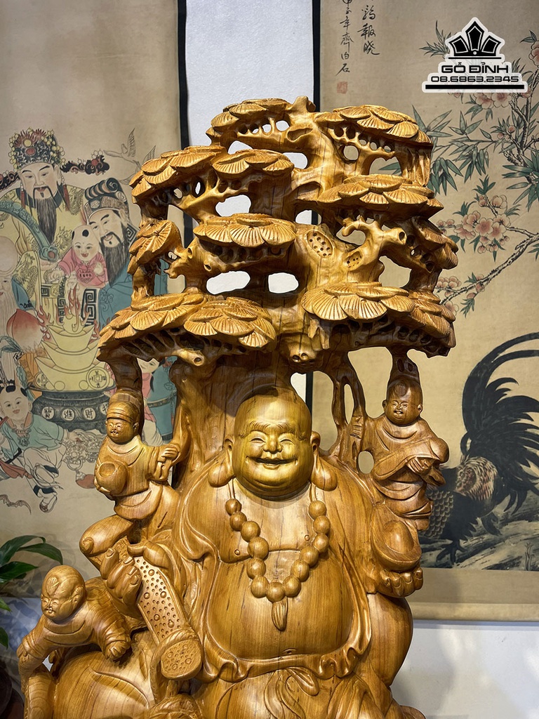Tượng Phật Di Lặc Ngồi Gốc Tùng Gỗ Ngọc Am