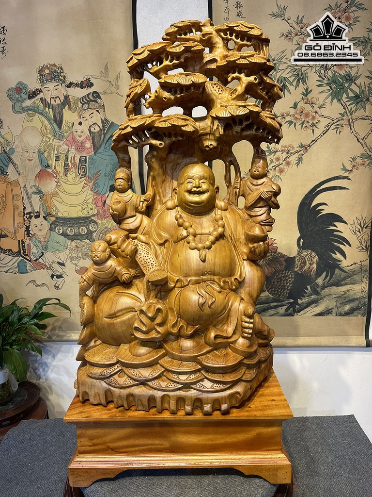 Tượng Phật Di Lặc Ngồi Gốc Tùng Gỗ Ngọc Am Cao 79 Ngang 44 Sâu 29 (cm)