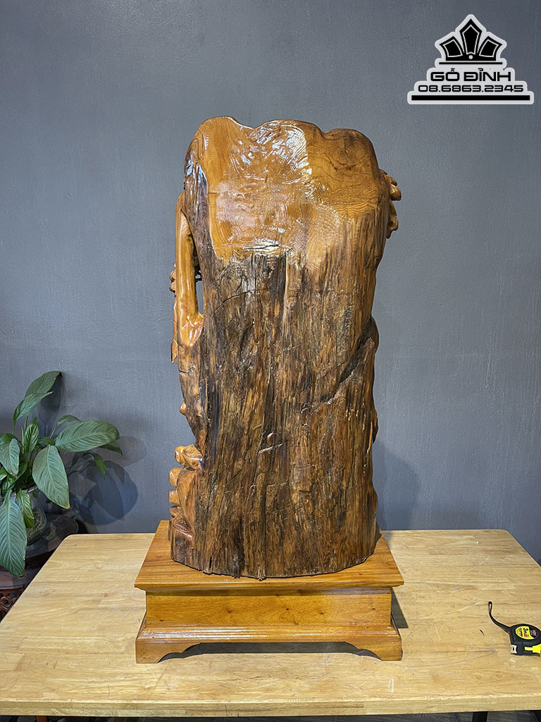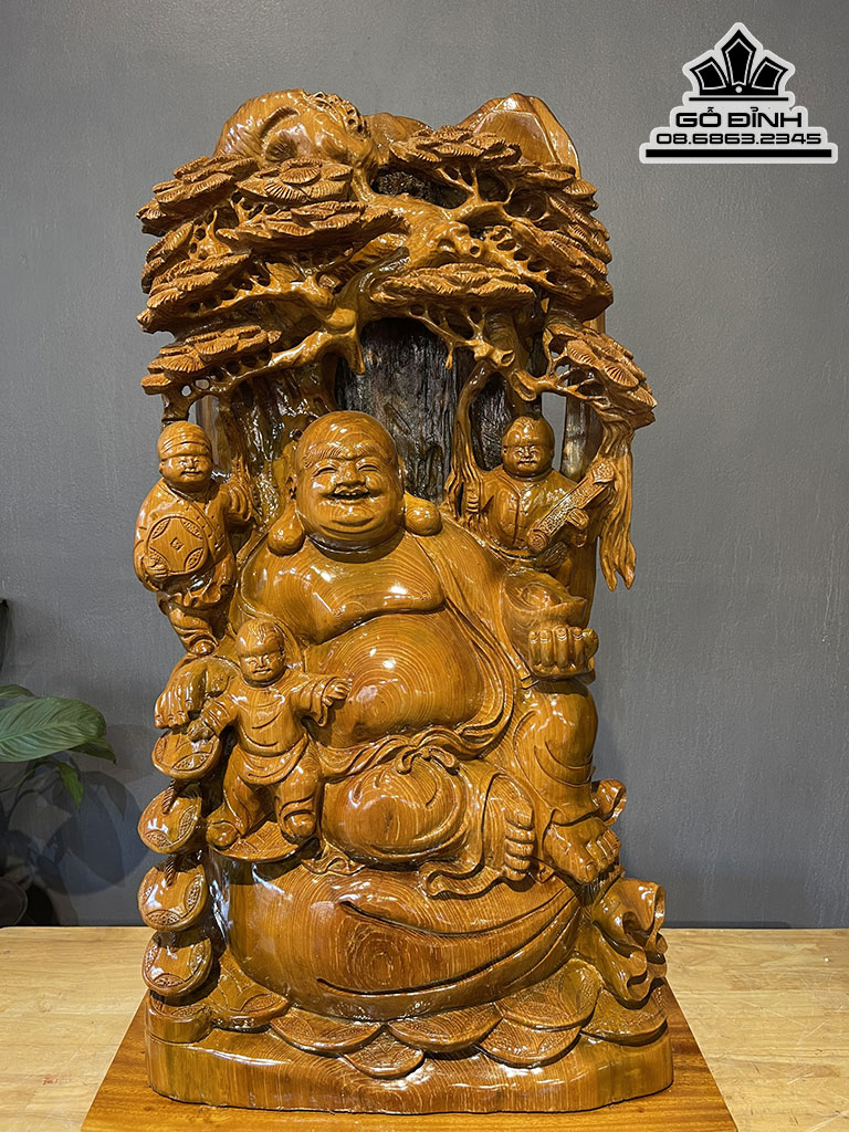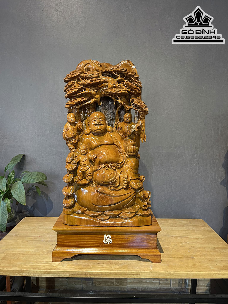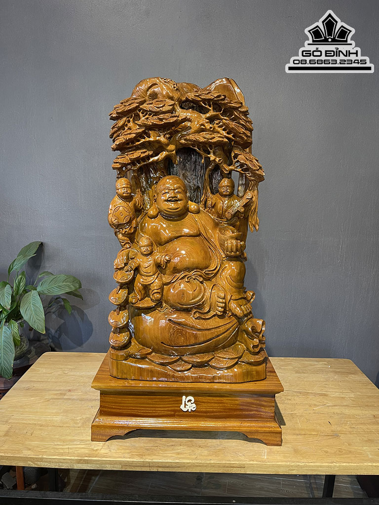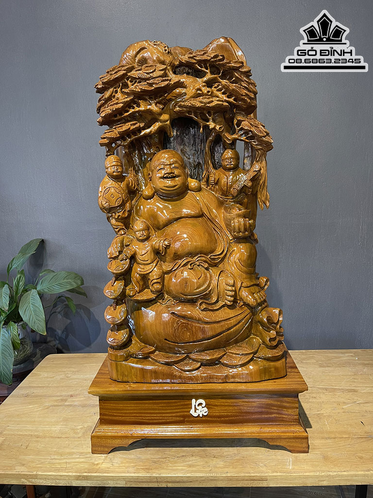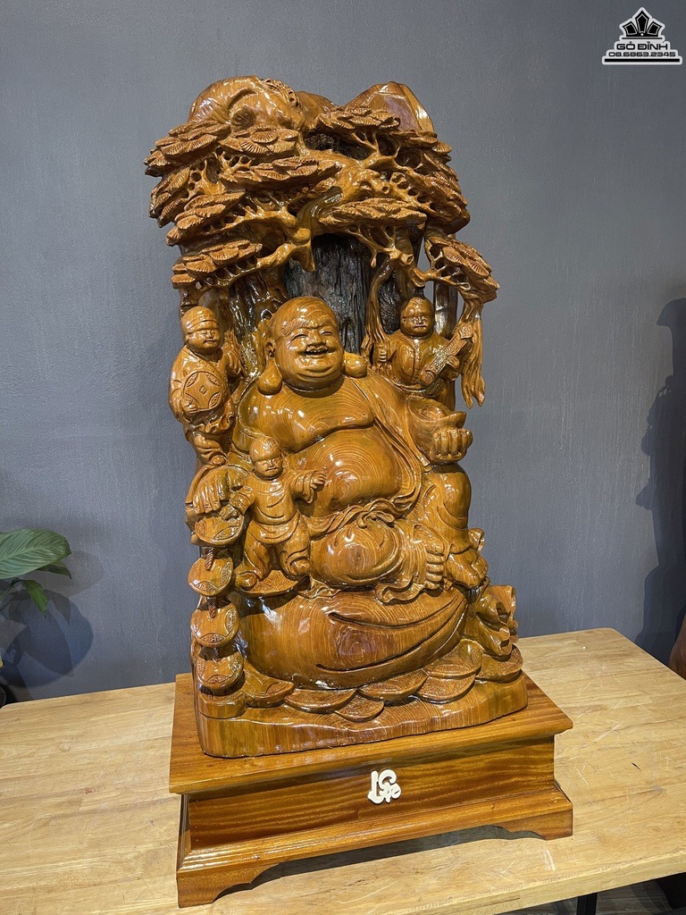 Tượng Phật Di Lặc Ngồi Gốc Tùng Gỗ Ngọc Am Cao 80 Ngang 40 Sâu 20 Cả Kỷ 95 (cm)
