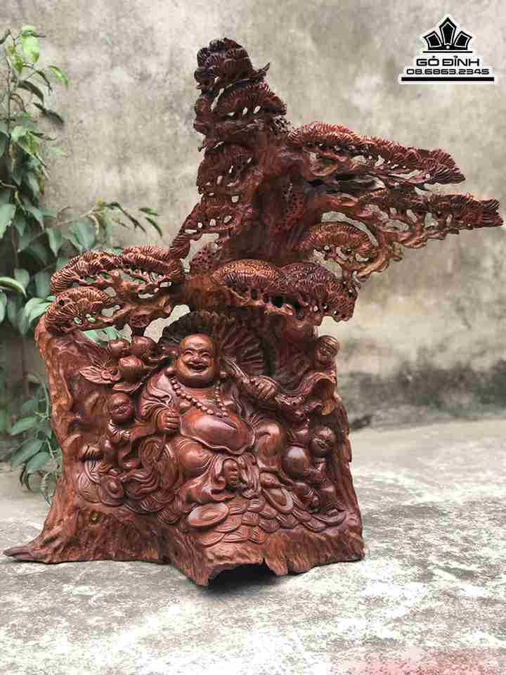 Tượng Phật Di Lặc Ngồi Gốc Tùng Gỗ Trắc Cao 60 Rộng 55 Dày 29 (cm)