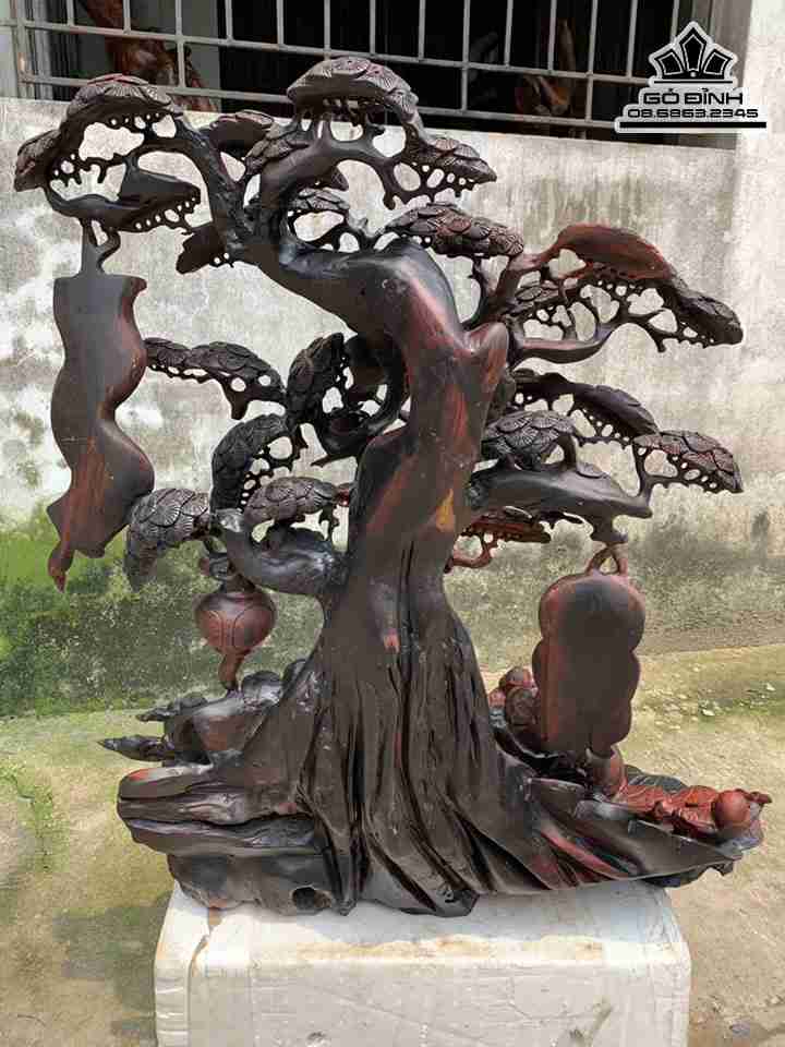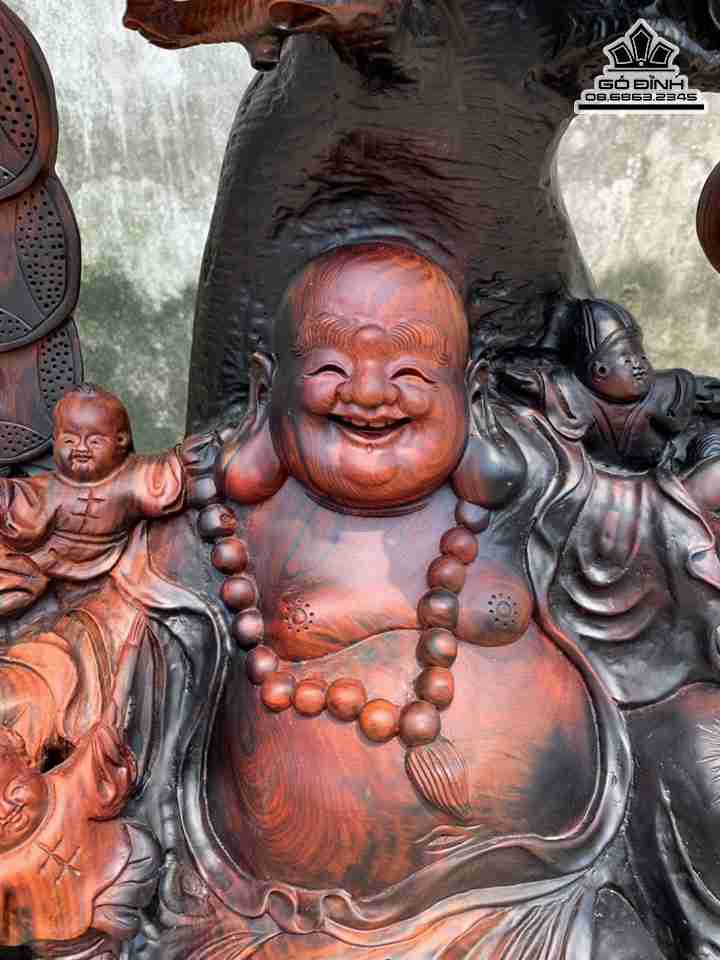 Tượng Phật Di Lặc Ngồi Gốc Tùng Gỗ Trắc Cao 86 Ngang 78 Sâu 30 (cm)