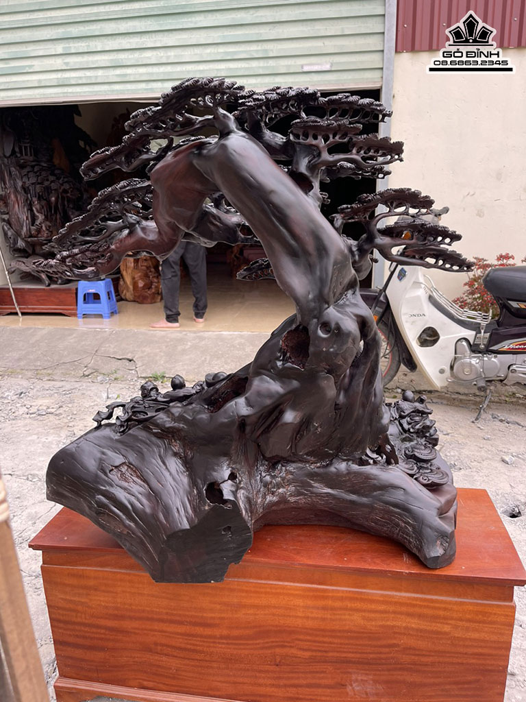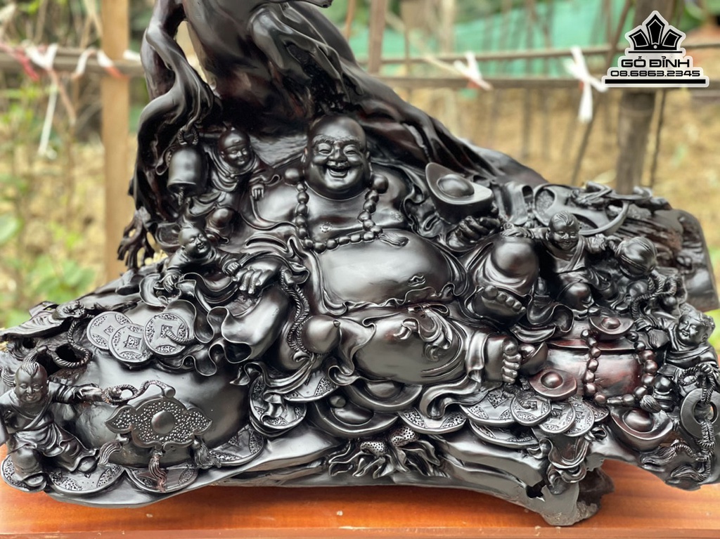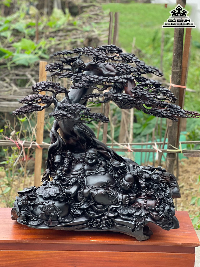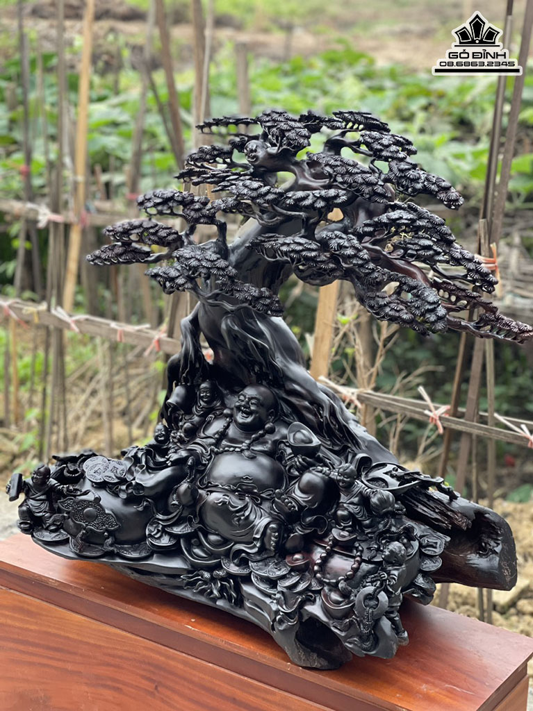 Tượng Phật Di Lặc Ngồi Gốc Tùng Gỗ Trắc