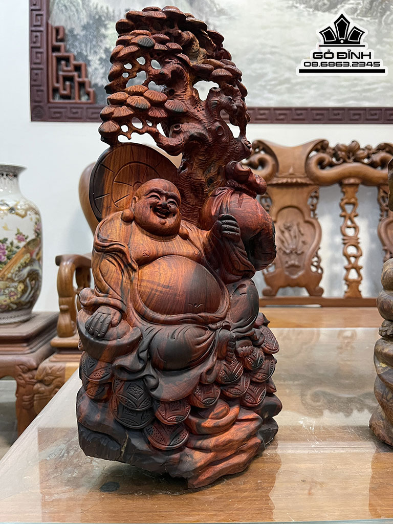 Tượng Phật Di Lặc Ngồi Gốc Tùng Gỗ Trắc Nguyên Khối