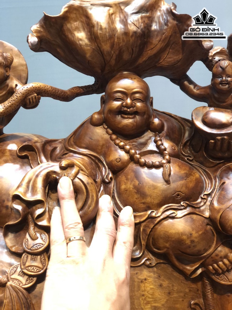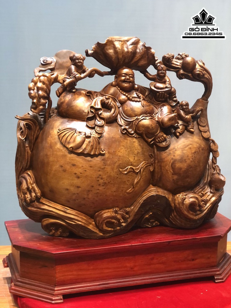 Tượng Phật Di Lặc Ngồi Hồ Lô Gỗ Ngọc Am Cao 77 Ngang 65 Sâu 32 (cm)