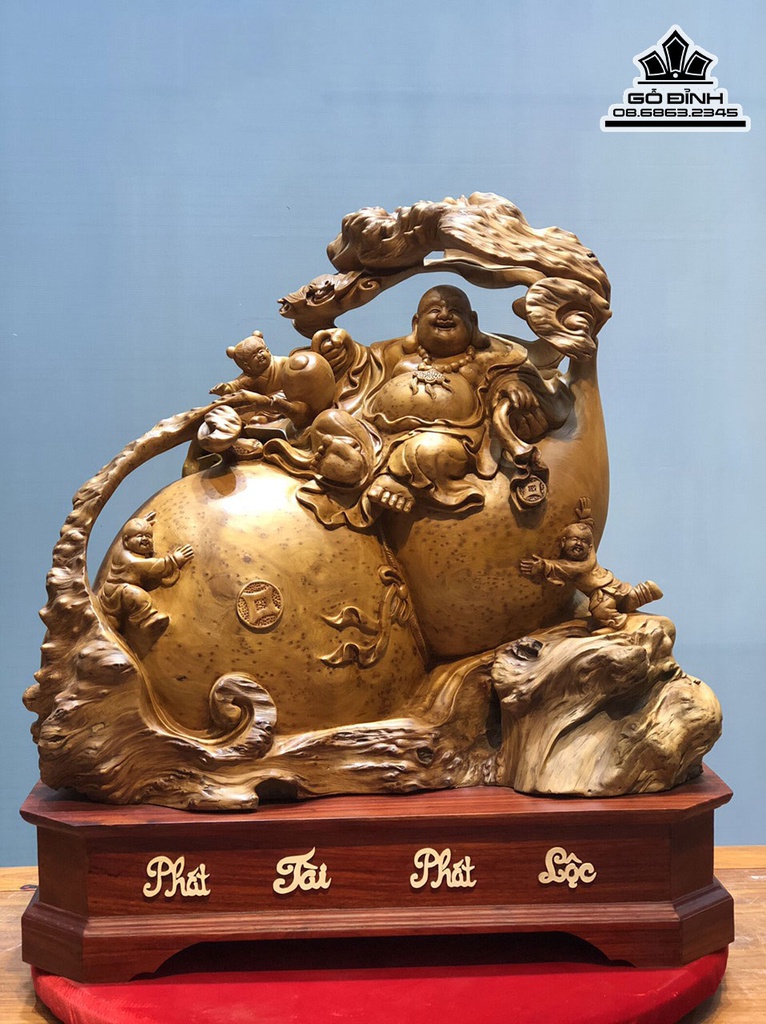 Tượng Phật Di Lặc Ngồi Hồ Lô Gỗ Ngọc Am Cao 78 Ngang 71 Sâu 353 (cm)