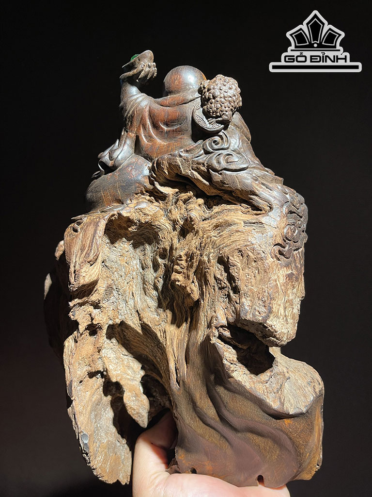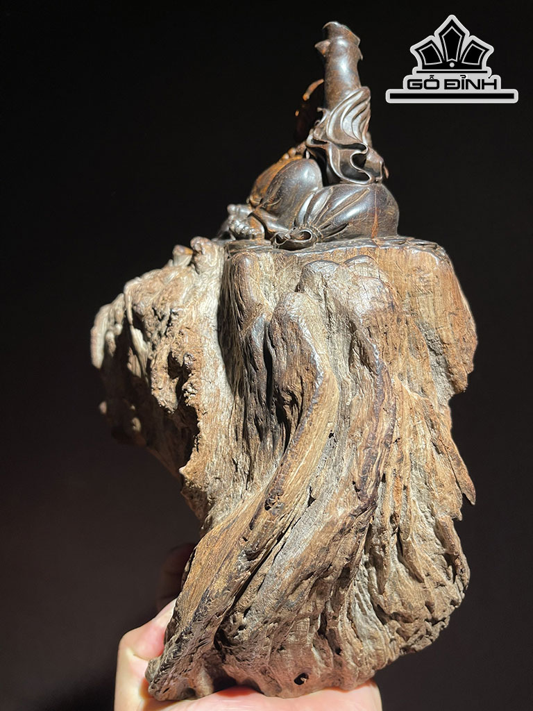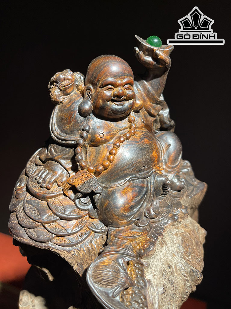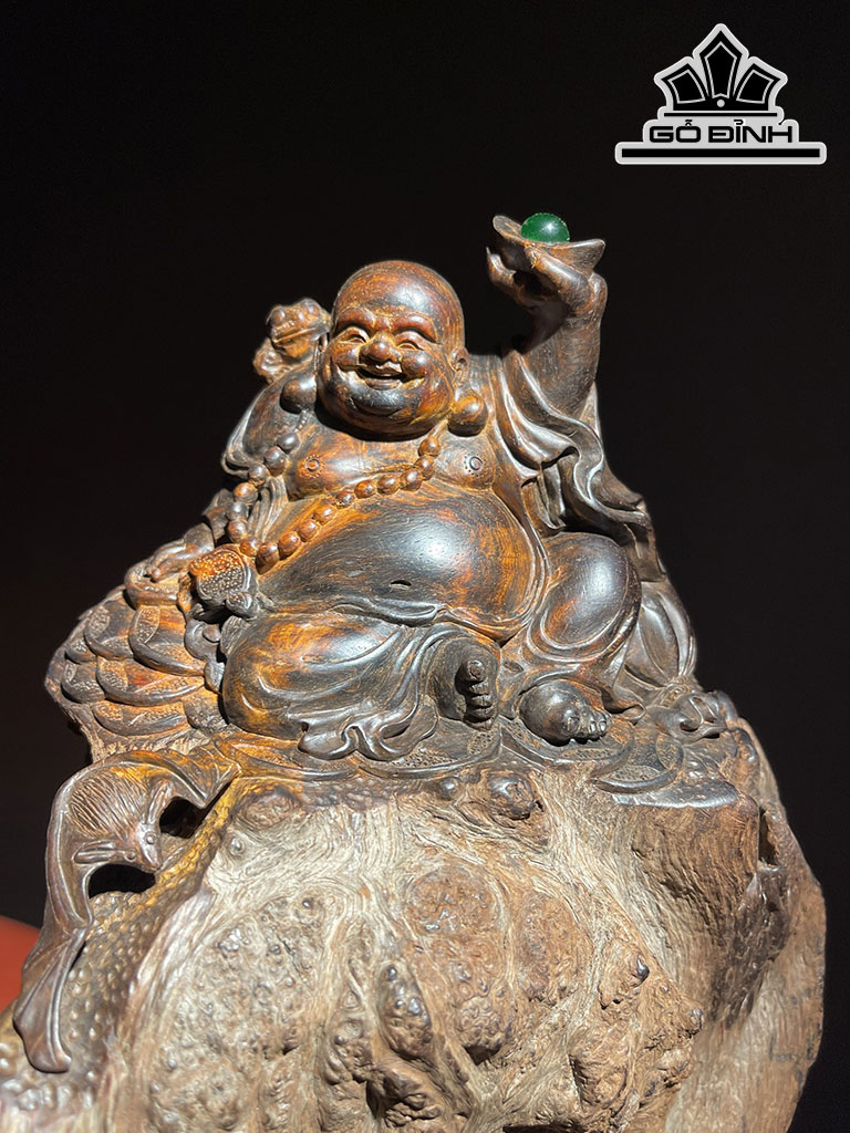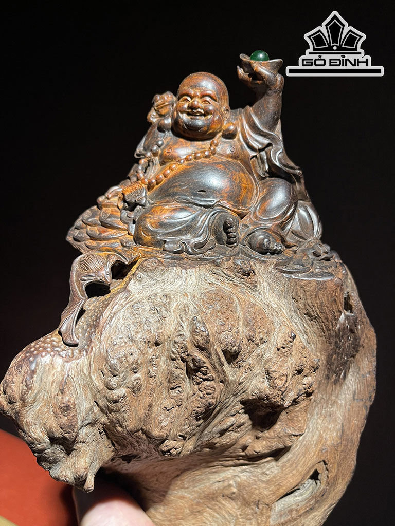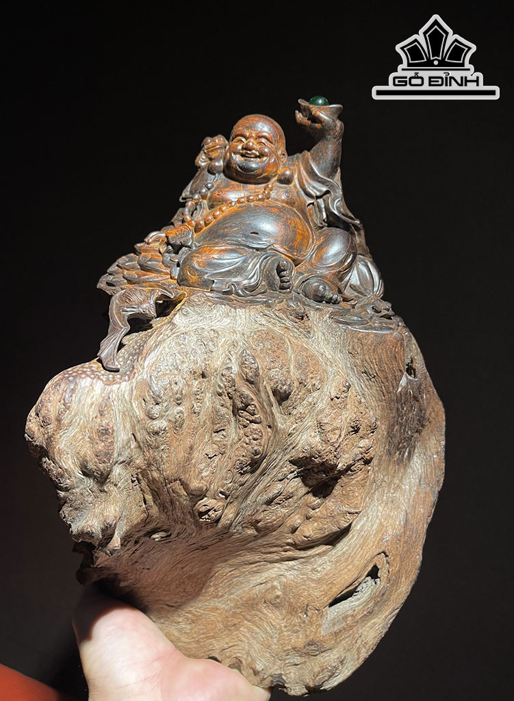 Tượng Phật Di Lặc Ngồi Kim Tiền Gỗ Nu Trắc Cao 27 Ngang 21 Sâu 17 (cm)