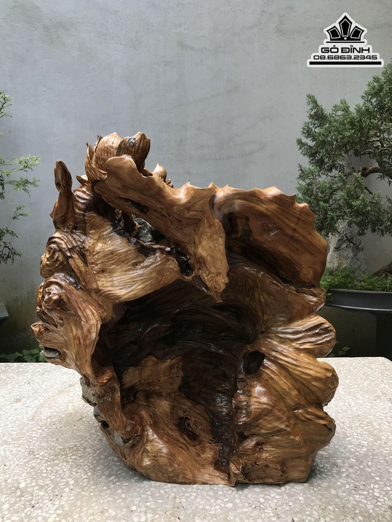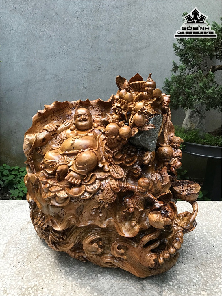Tương Phật Di Lặc Ngồi Lá Sen Gỗ Bách Xanh Cao 60 Ngang 55 Sâu 40 (cm)