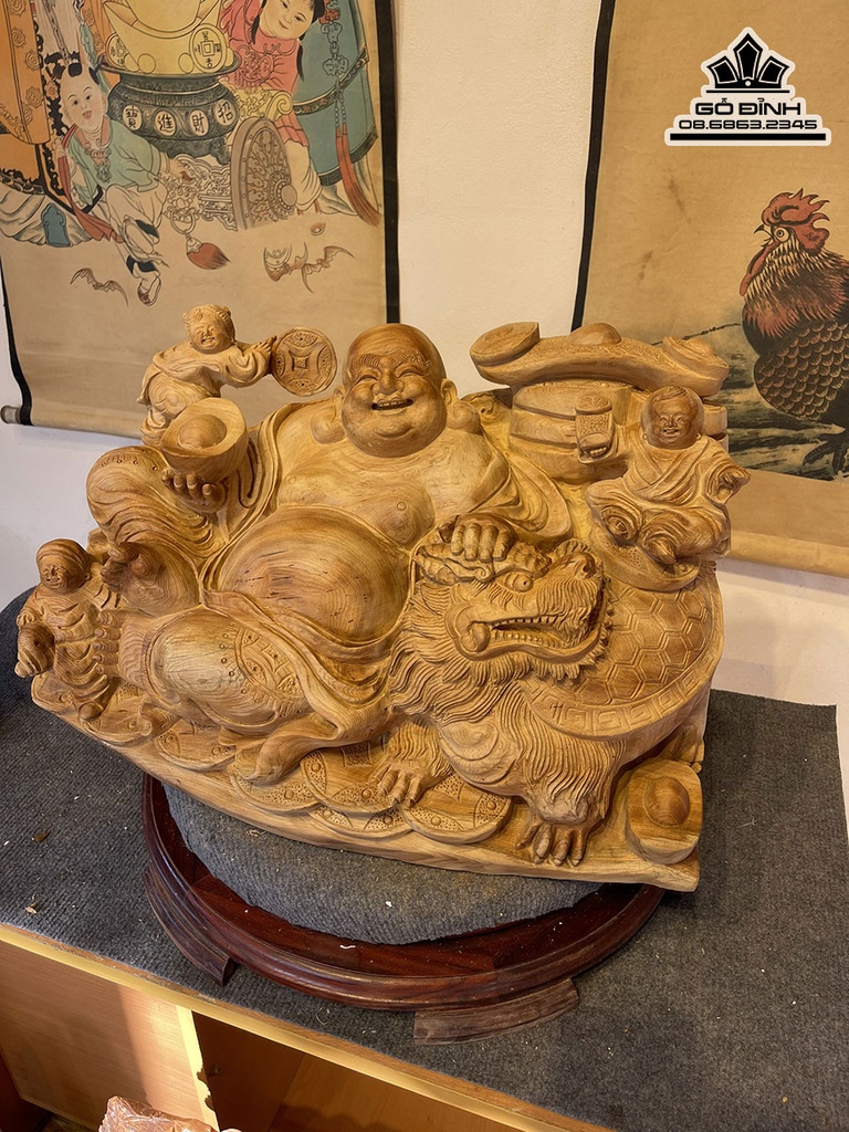 Tượng Phật Di Lặc Ngồi Long Quy Gỗ Ngọc Am