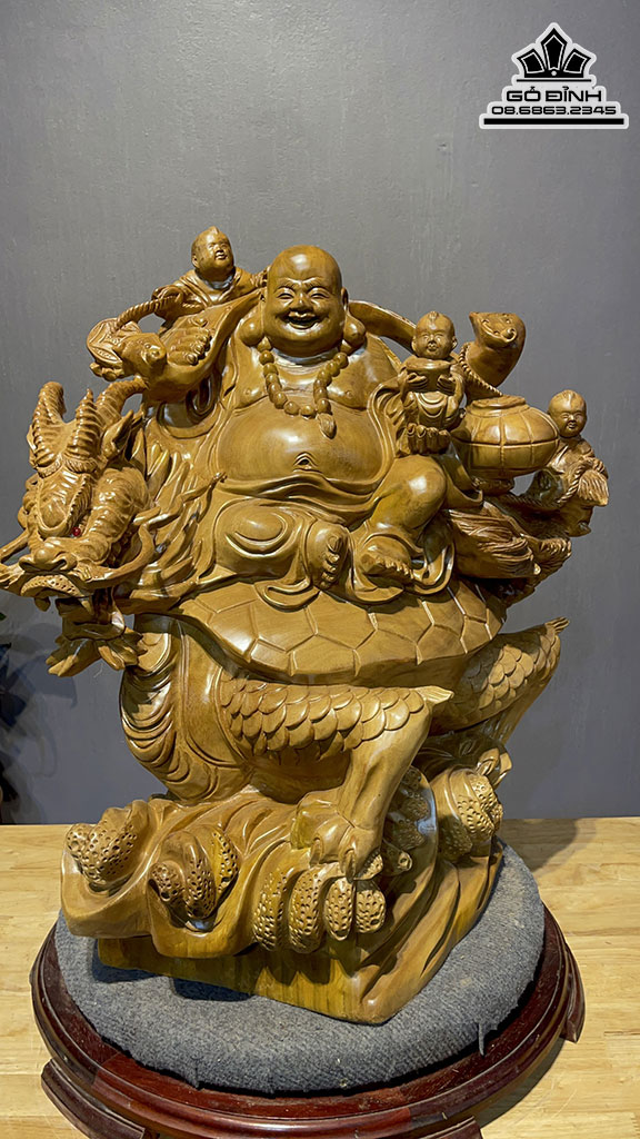 Tượng Phật Di Lặc Ngồi Long Quy Gỗ Xá Xị (Gù Hương)