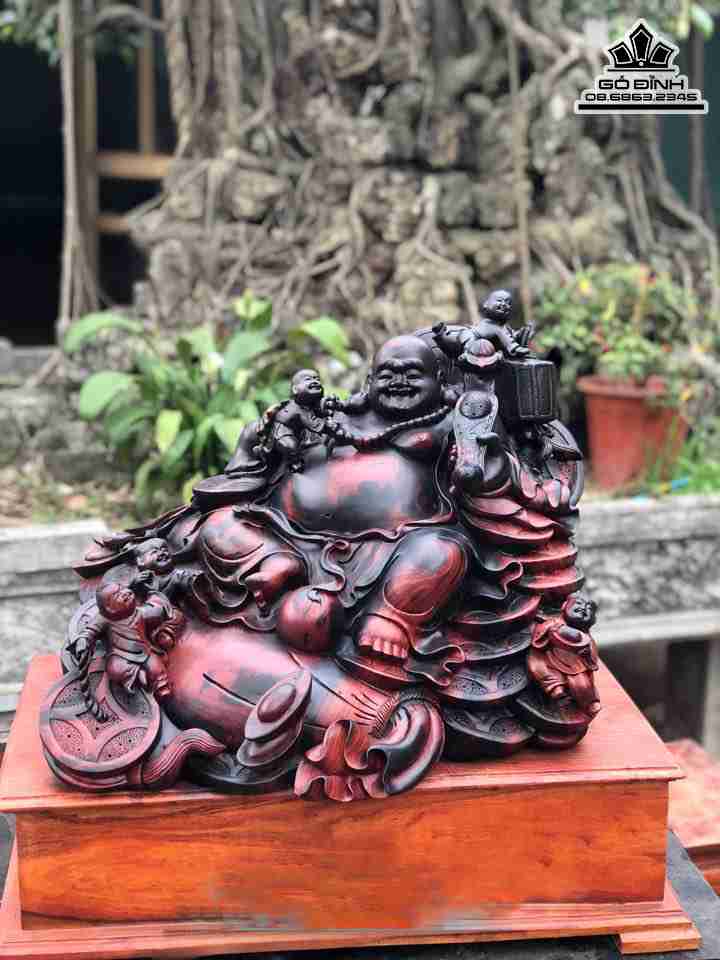 Tượng Phật Di Lặc Ngồi Ngũ Phúc Gỗ Trắc Cao 40 Ngang 50 Sâu 40 (cm)