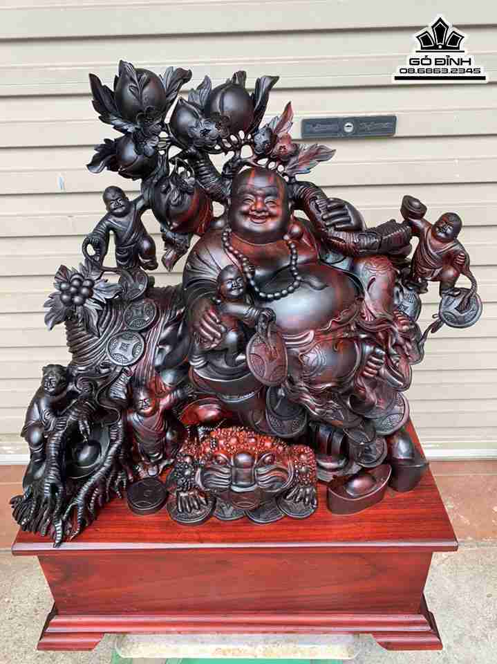 Tượng Phật Di Lặc Ngồi Ngũ Phúc Gỗ Trắc Rộng 60 Sâu 35 Cao 45 (cm)