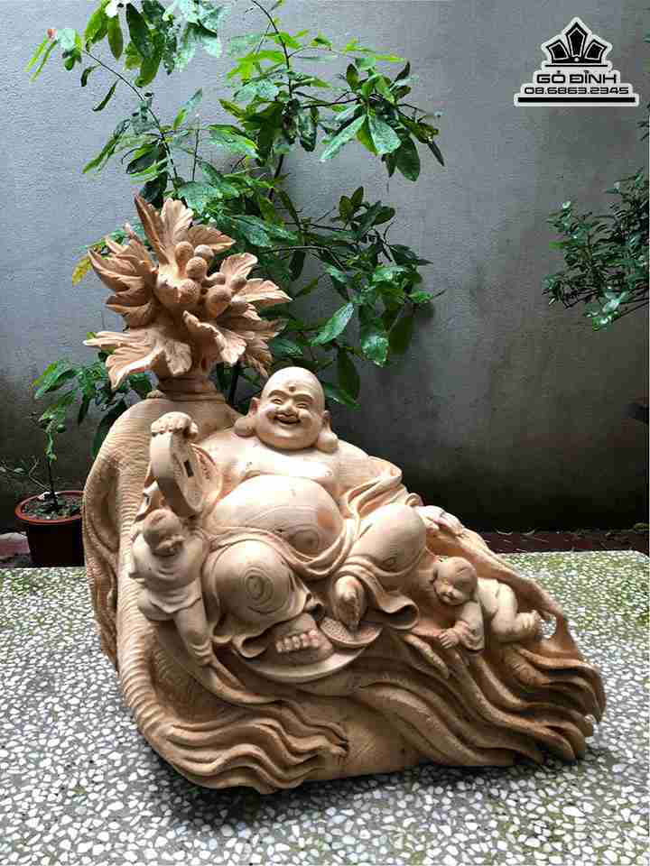 Tượng Phật Di Lặc Ngồi Nhân Sâm Gỗ Ngọc Am Cao 50 Ngang 50 Sâu 30 (cm)