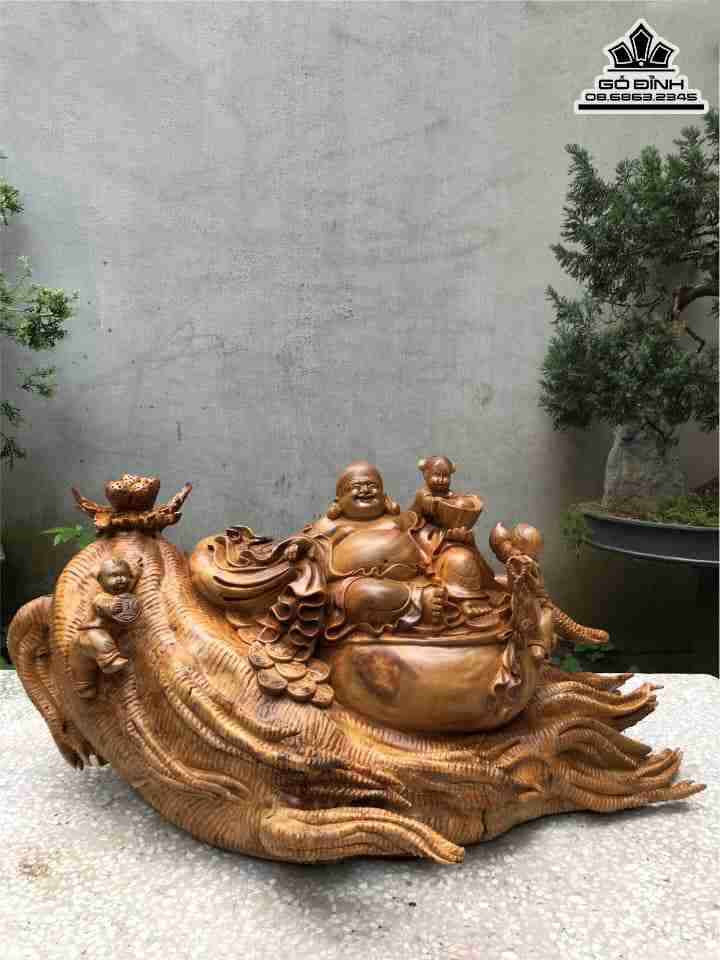 Tượng Phật Di Lặc Ngồi Nhân Sâm Gỗ Xá Xị ( Gù Hương ) Cao 36 Rộng 78 Dày 38 (cm)