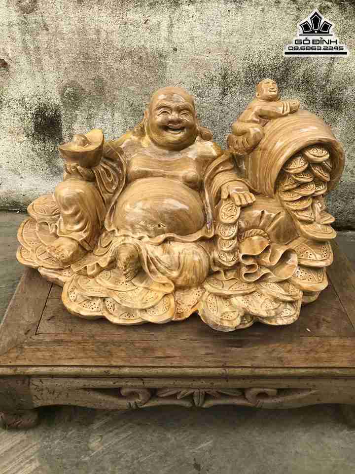 Tượng Phật Di Lặc Ngồi Nhất Phúc Gỗ Nu Nghiến Cao 25 Ngang 44 Sâu 25 (cm)