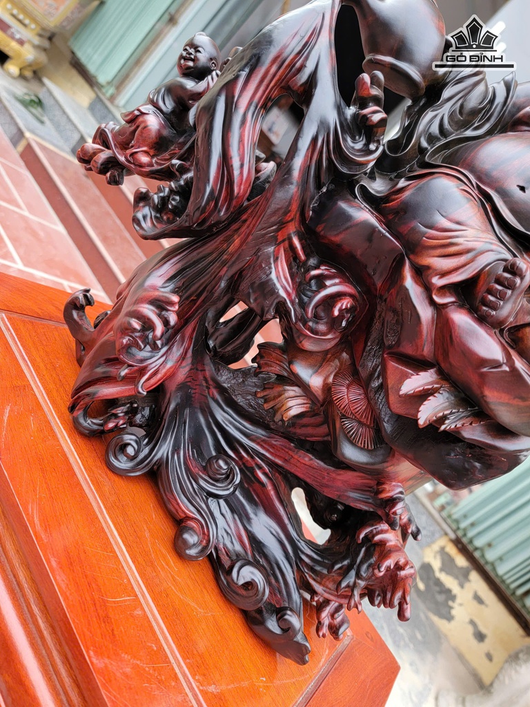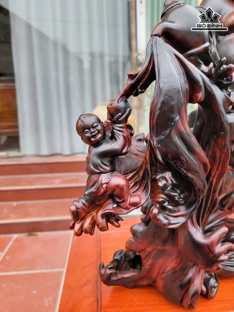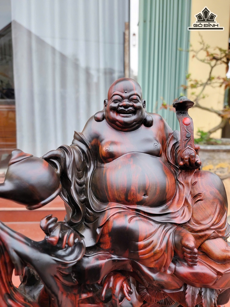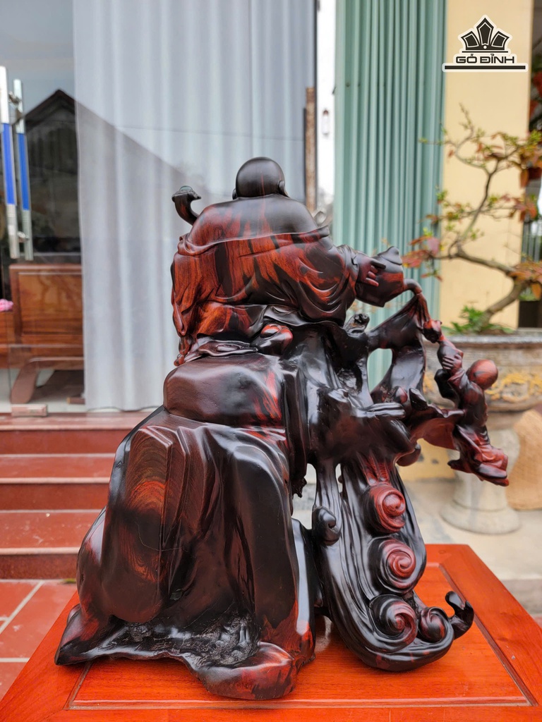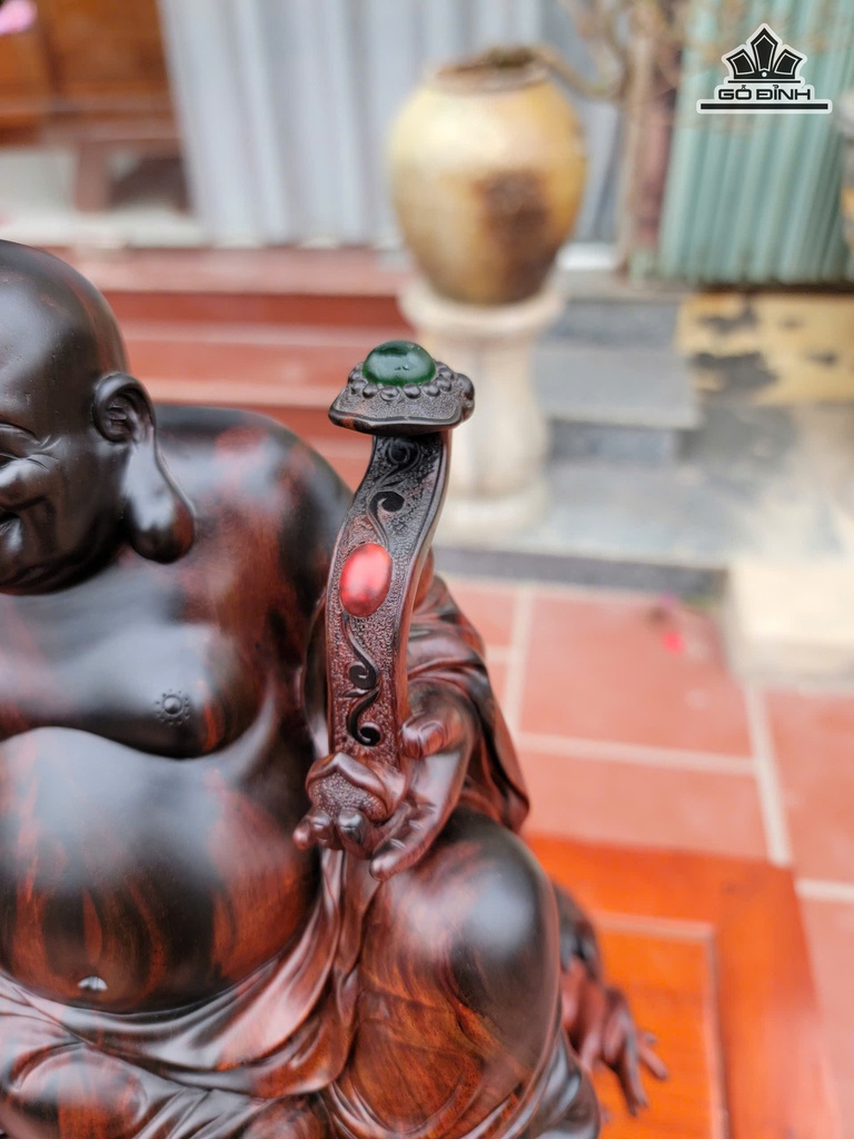 Tượng Phật Di Lặc Ngồi Sóng Trà Gỗ Trắc Cao 48 Ngang 40 Sâu 21 (cm)