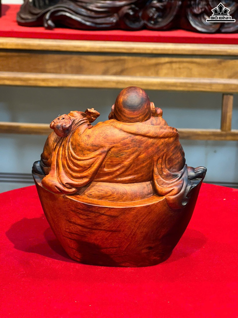 Tượng Phật Di Lặc Ngồi Thỏi Vàng Gỗ Trắc Cao 14 Ngang 14 Sâu 9 (cm)