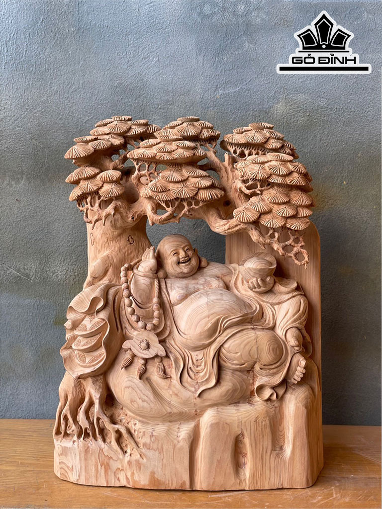 Tượng Phật Di Lặc Ngồi Tùng Gỗ Ngọc Am Cao 50 Ngang 36 Sâu 20 (cm)