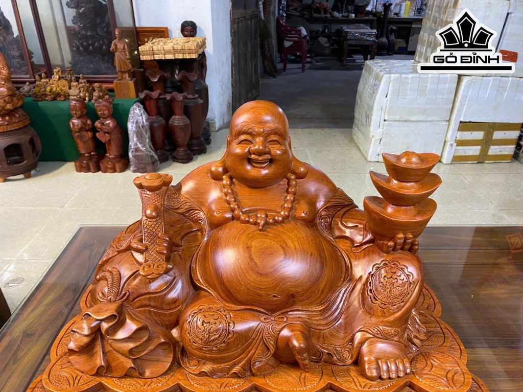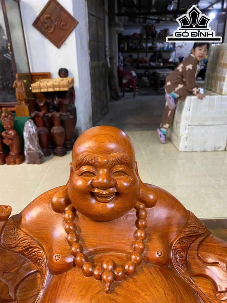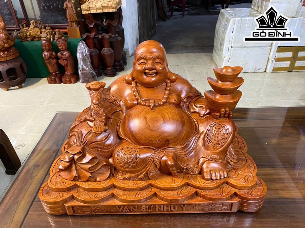Tượng Phật Di Lặc Ngồi Vạn Sự Như Ý Gỗ Hương Cao 37 Ngang 60 Sâu 37 (cm)