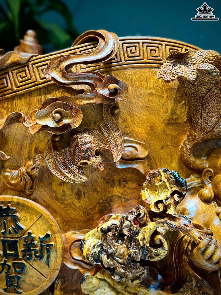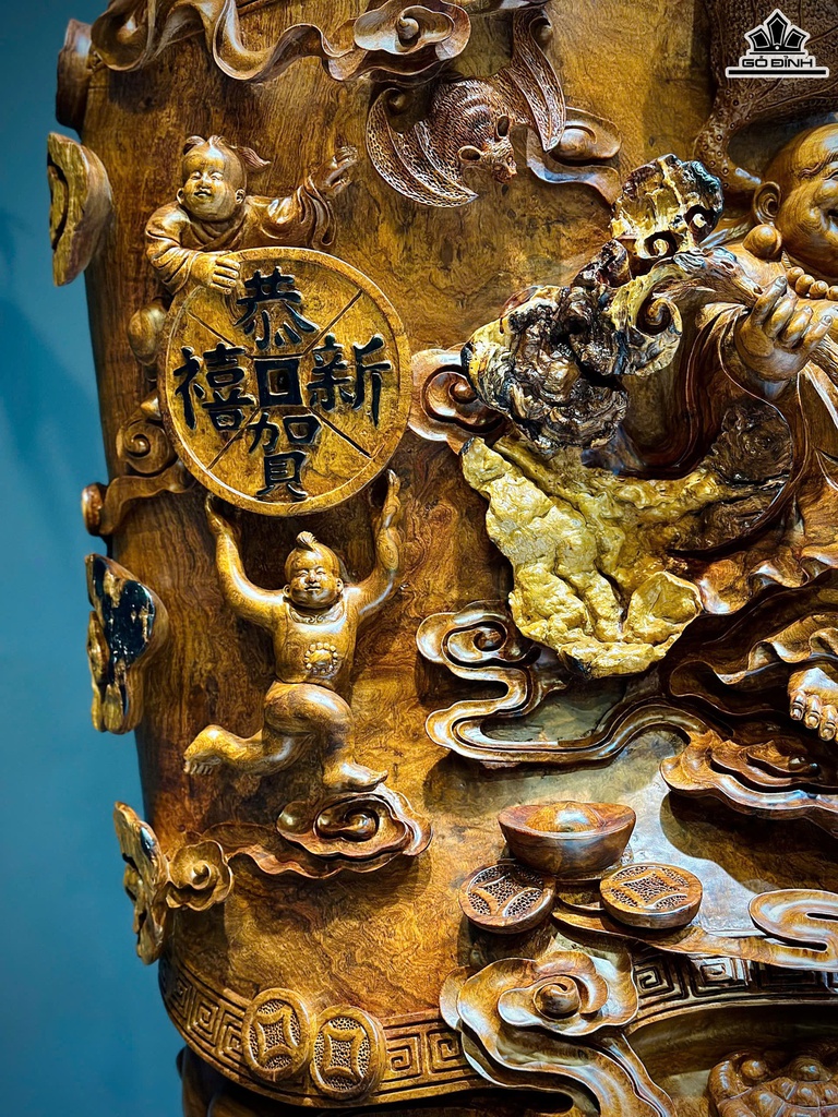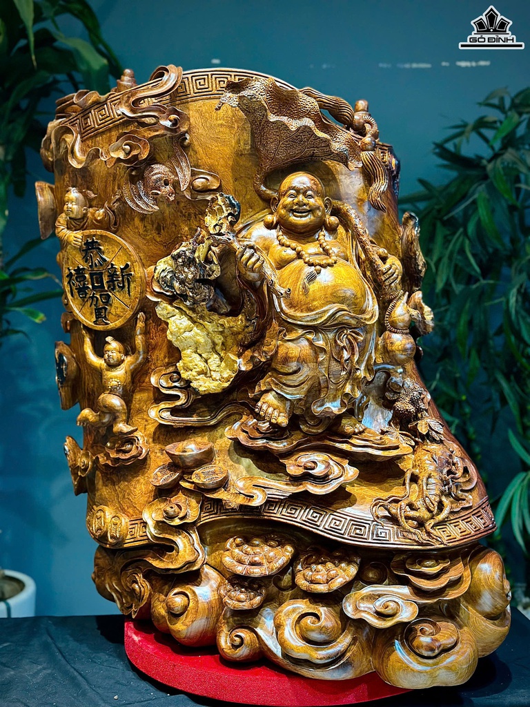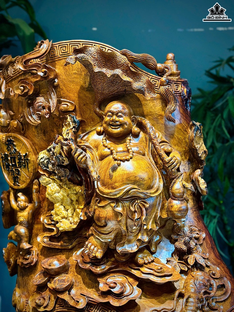 Tượng Phật Di Lặc Ngự Cuốn Thư Gỗ Hương Cao 75 Ngang 64 Sâu 48 (cm)