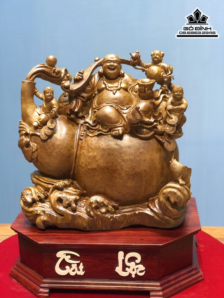 Tượng Phật Di Lặc Ngự Hồ Lô Gỗ Ngọc Am Cao 59 Ngang 43 Sâu 25 (cm)