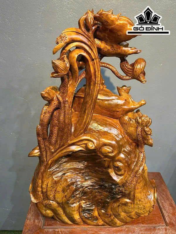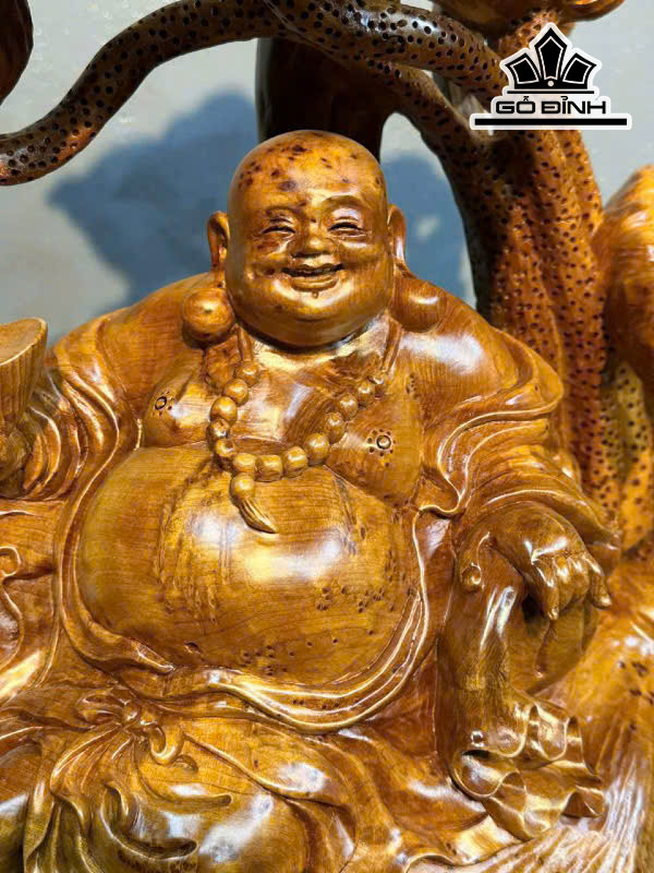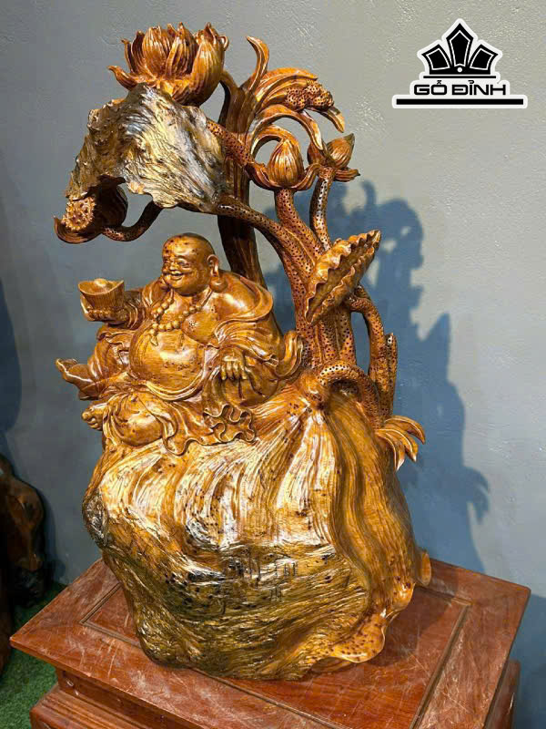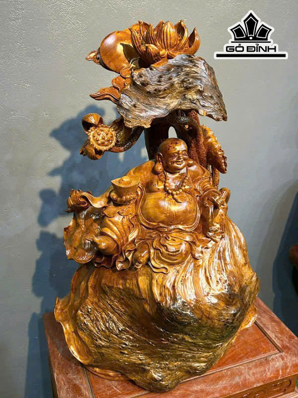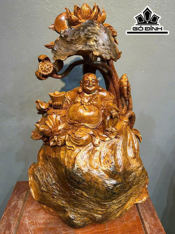 Tượng Phật Di Lặc Ngự Liên Hoa Gỗ Nu Ngọc Am Cao 74 Ngang 45 Sâu 26 (cm)