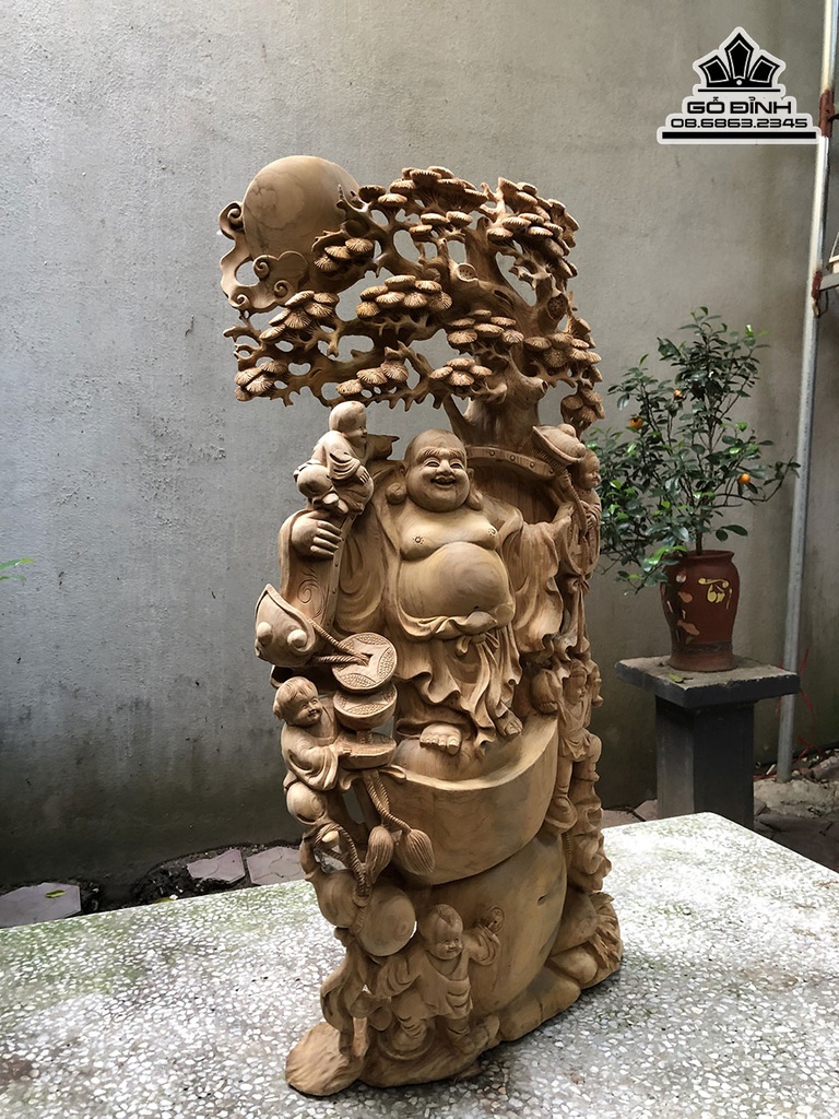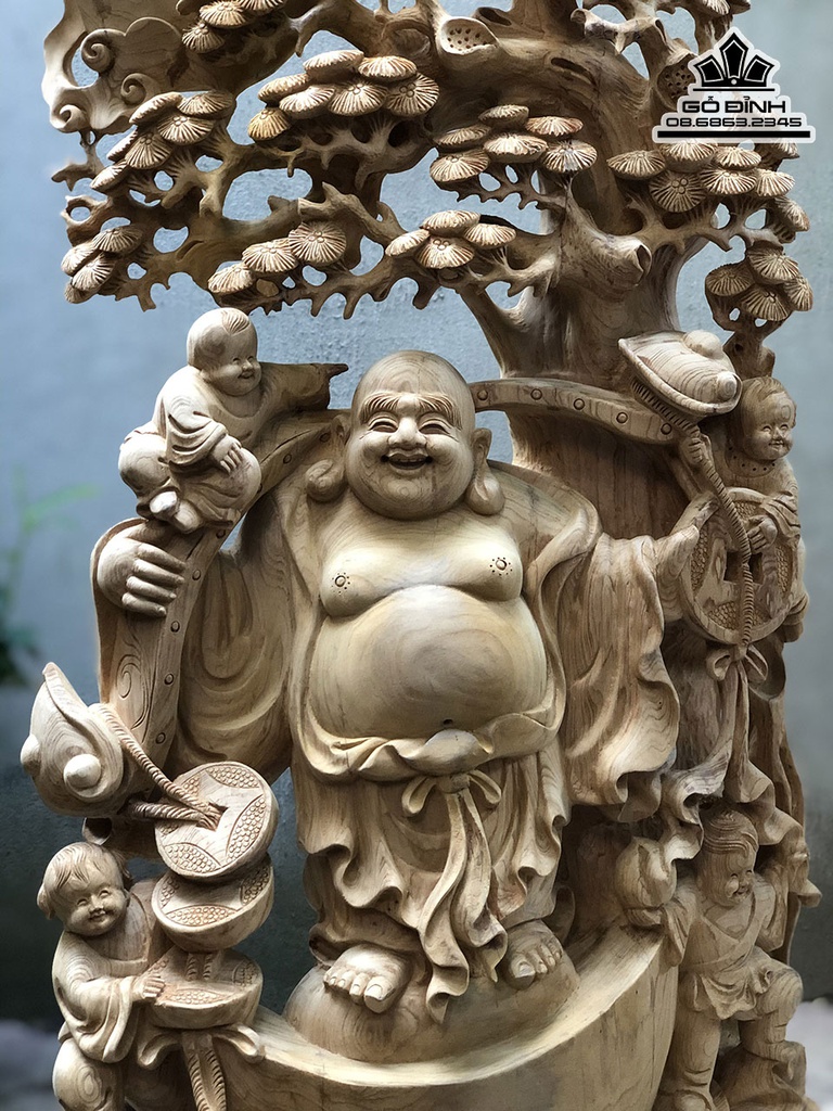 Tượng Phật Di Lặc Ngũ Phúc Đứng Gỗ Tùng Gỗ Ngọc Am