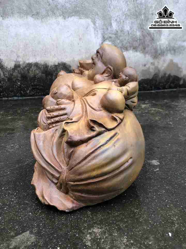 Tượng Phật Di Lặc Ngũ Phúc Gỗ Bách Xanh Cao 23 Ngang 62 Sâu 19 (cm)