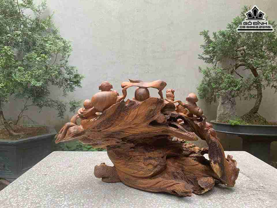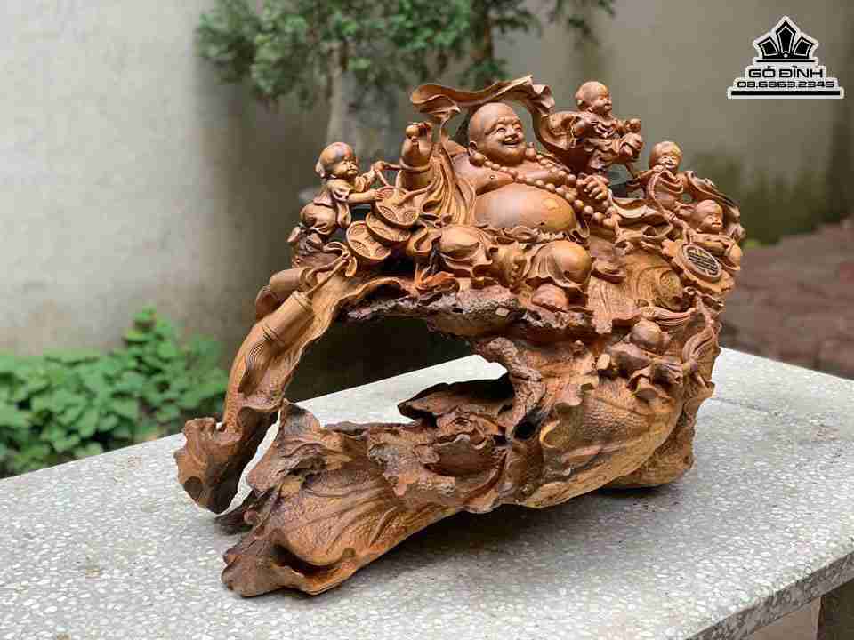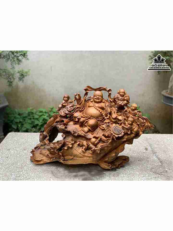 Tượng Phật Di Lặc Ngũ Phúc Gỗ Bách Xanh Cao 52 Ngang 69 Sâu 38 (cm)
