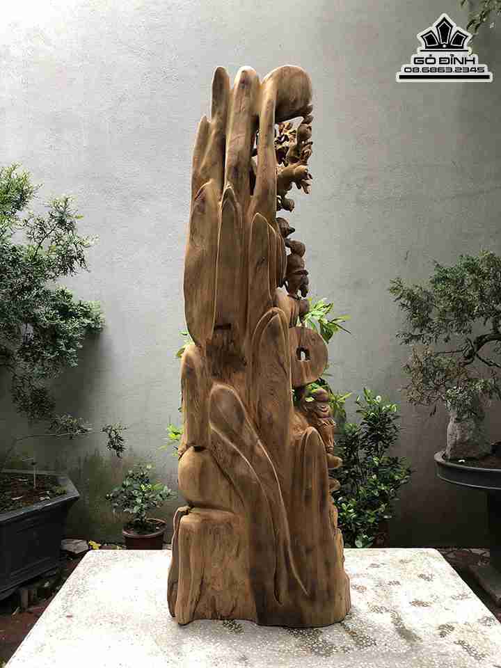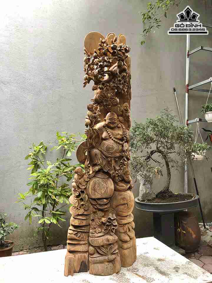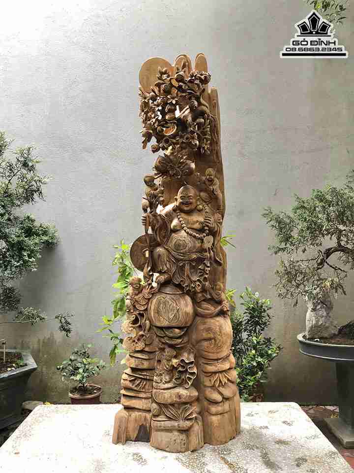 Tượng Phật Di Lặc Ngũ Phúc Gỗ Bách Xanh Cao 145 Ngang 48 Sâu 25 (cm)