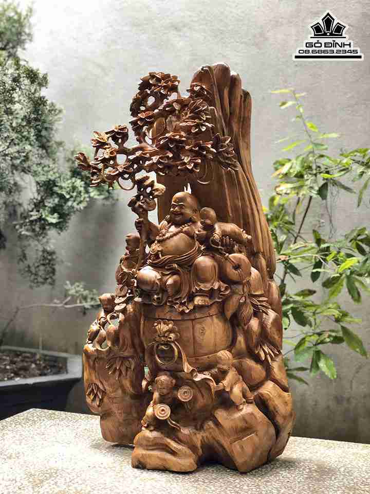 Tượng Phật Di lặc Ngũ Phúc Gỗ Bách Xanh