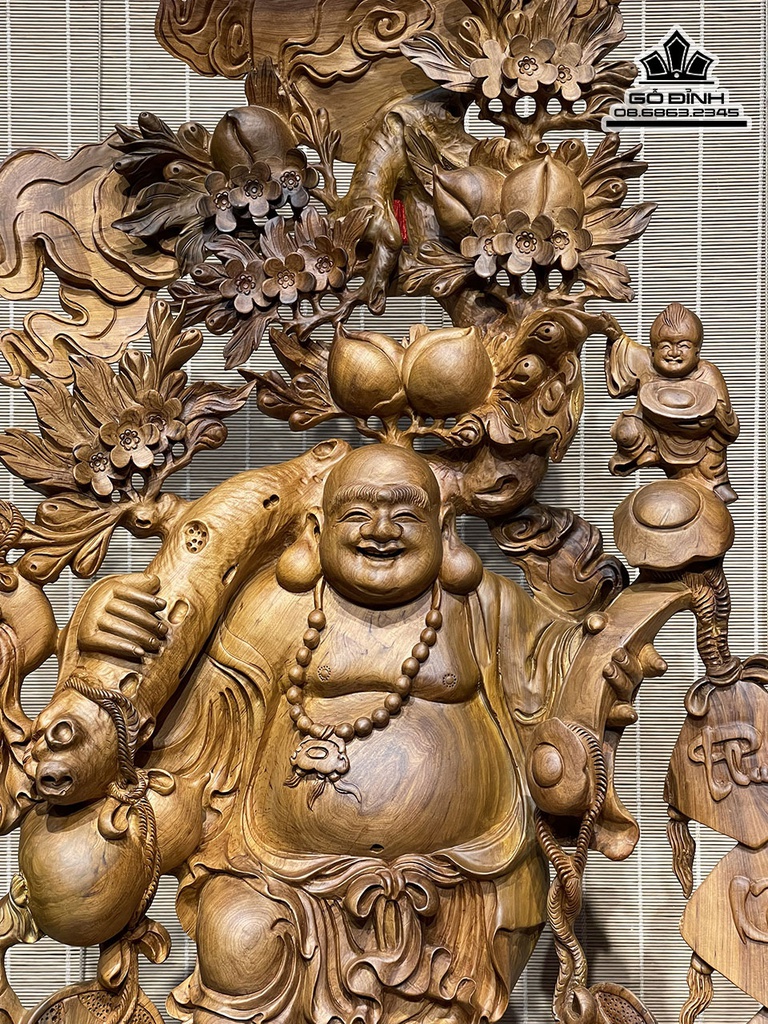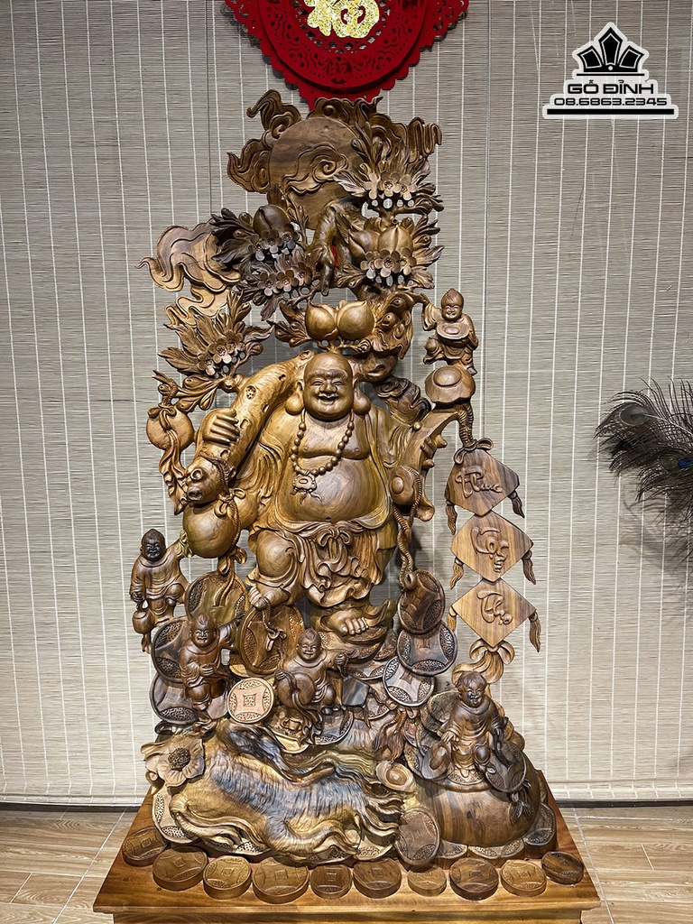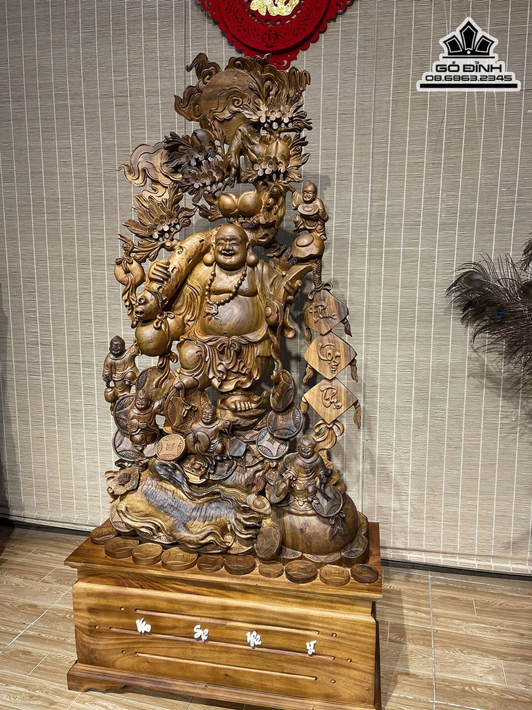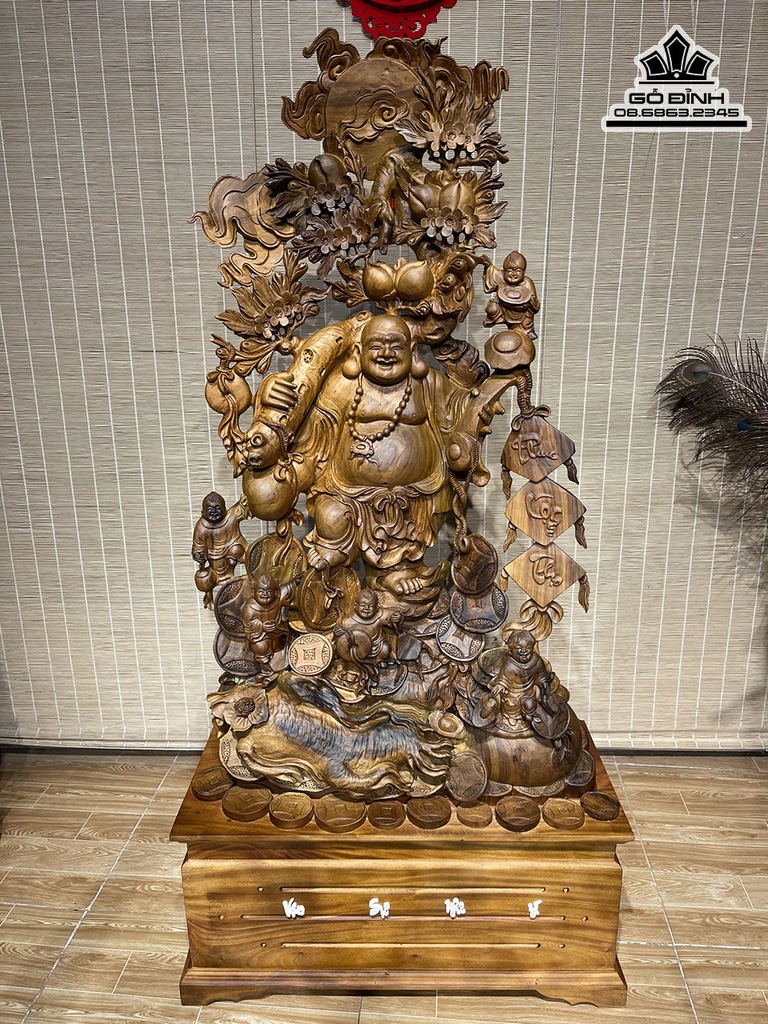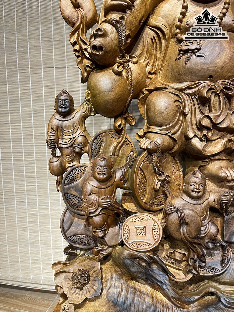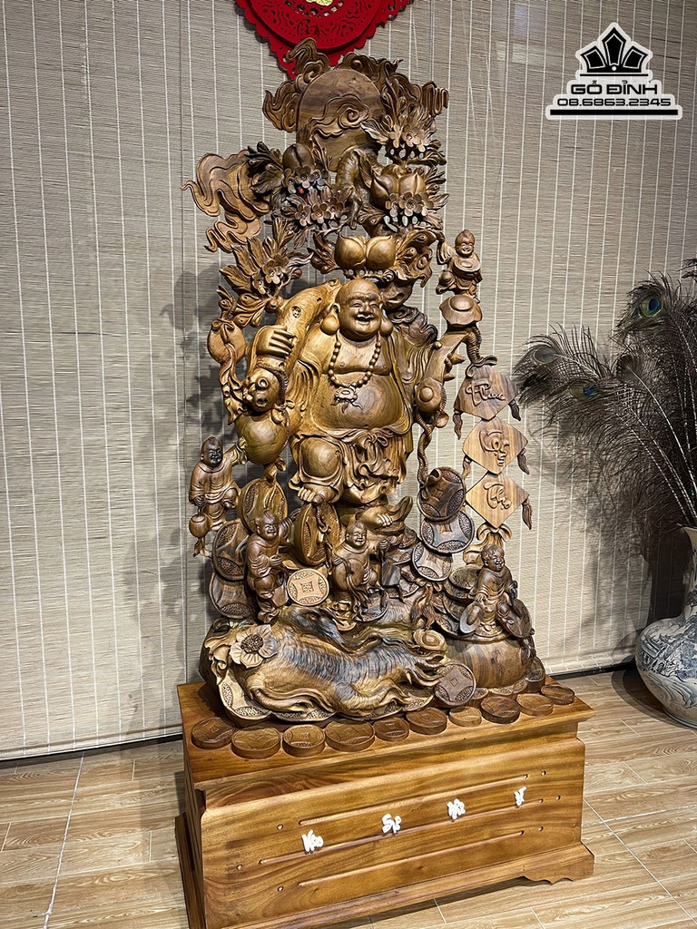 Tượng Phật Di Lặc Ngũ Phúc Gỗ Bách Xanh