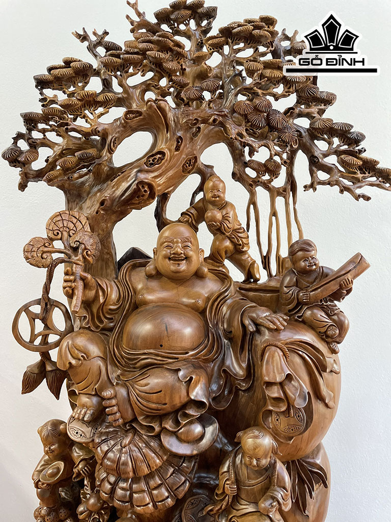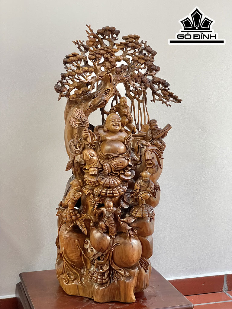 Tượng Phật Di Lặc Ngũ Phúc Gỗ Bách Xanh Cao 113 Ngang 56 Sâu 38 (cm)