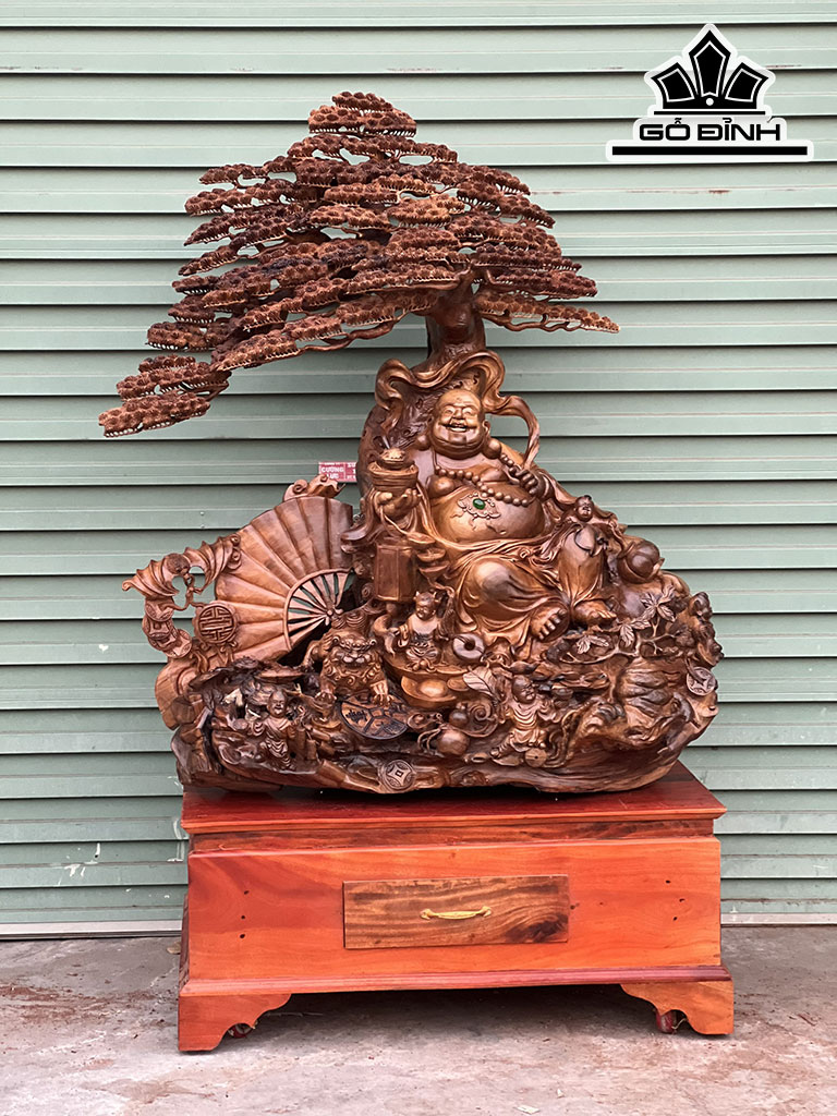 Tượng Phật Di Lặc Ngũ Phúc Gỗ Bách Xanh Cao 173 Ngang 115 Sâu 50 (cm)