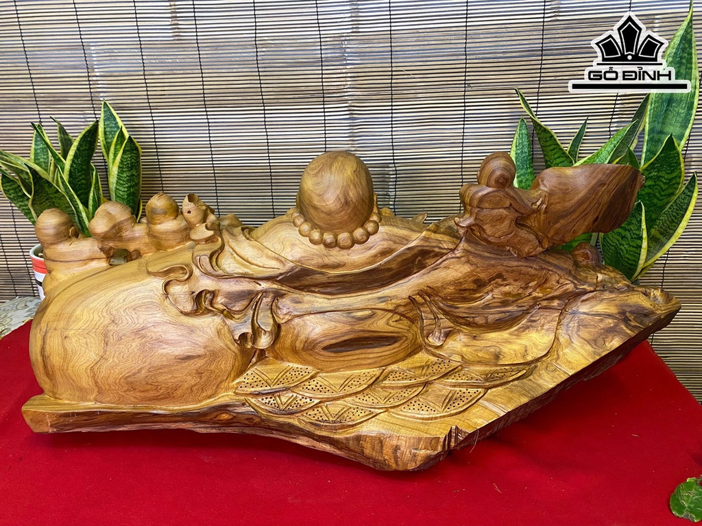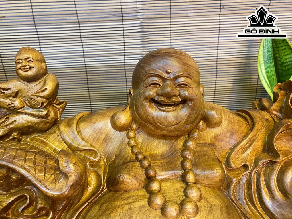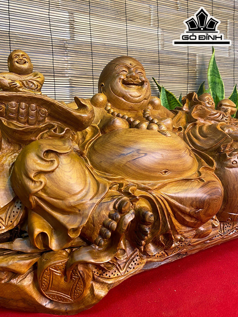 Tượng Phật Di Lặc Ngũ Phúc Gỗ Bách Xanh Cao 34 Ngang 76 Sâu 31 (cm)