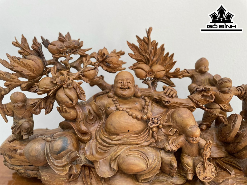 Tượng Phật Di Lặc Ngũ Phúc Gỗ Bách Xanh Cao 38 Ngang 80 Sâu 24 (cm)