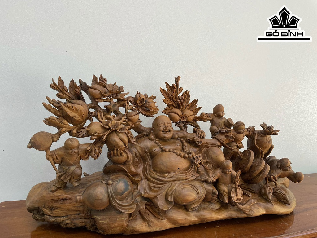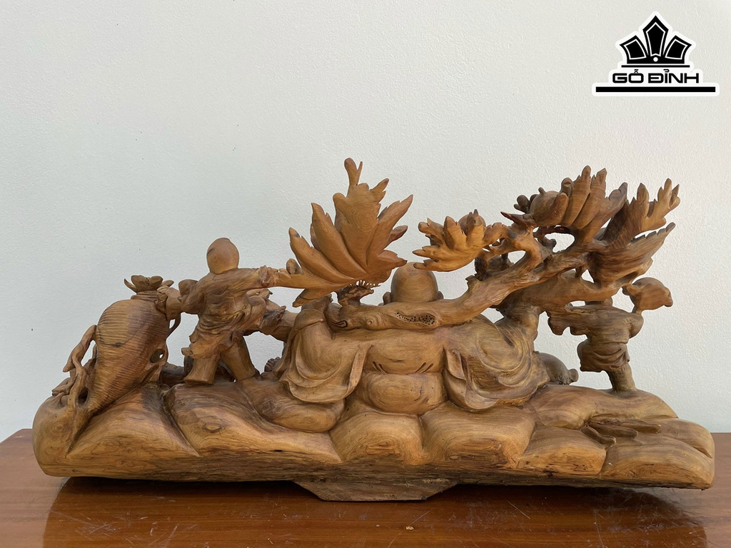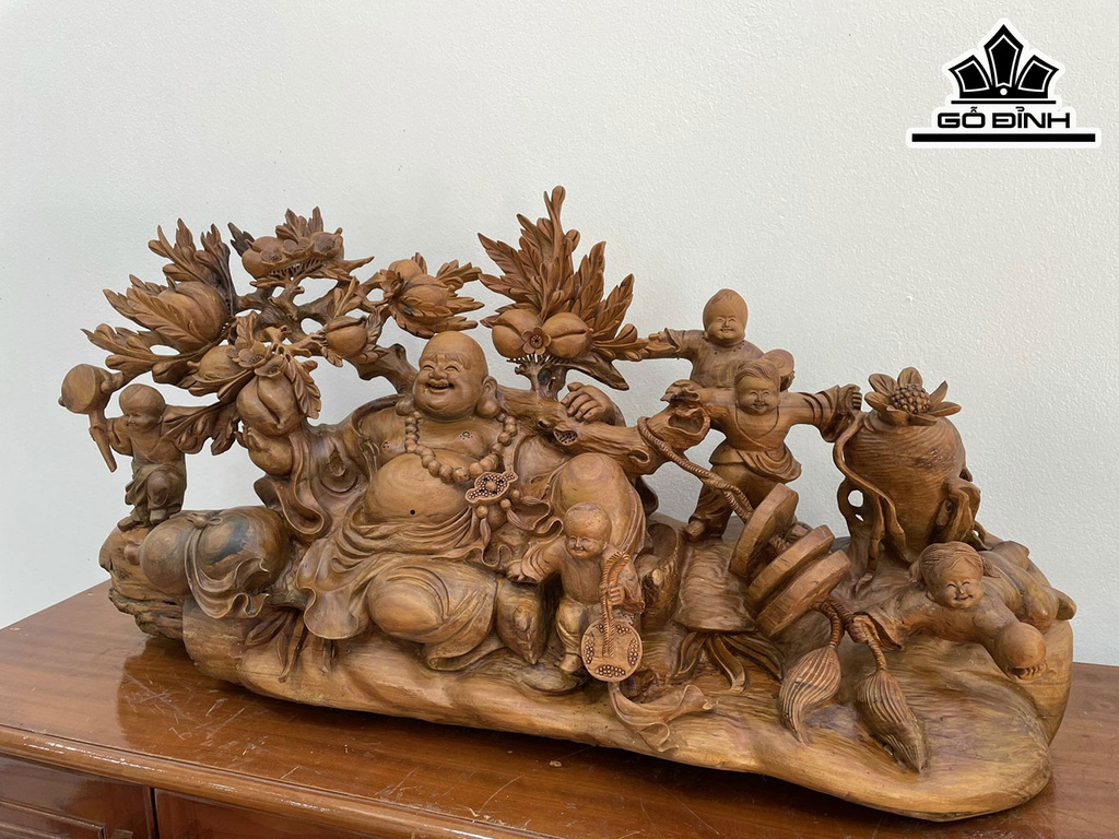 Tượng Phật Di Lặc Ngũ Phúc Gỗ Bách Xanh Cao 38 Ngang 80 Sâu 24 (cm)