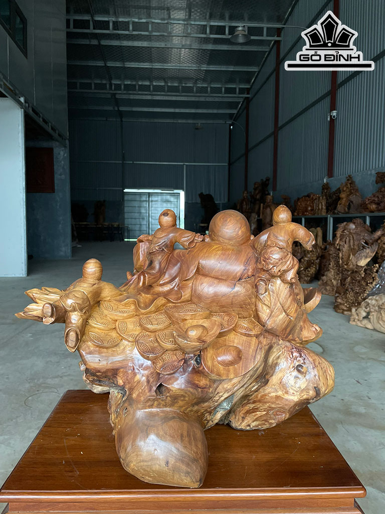 Tượng Phật Di Lặc Ngũ Phúc Gỗ Bách Xanh Cao 47 Ngang 60 Sâu 45 (cm)