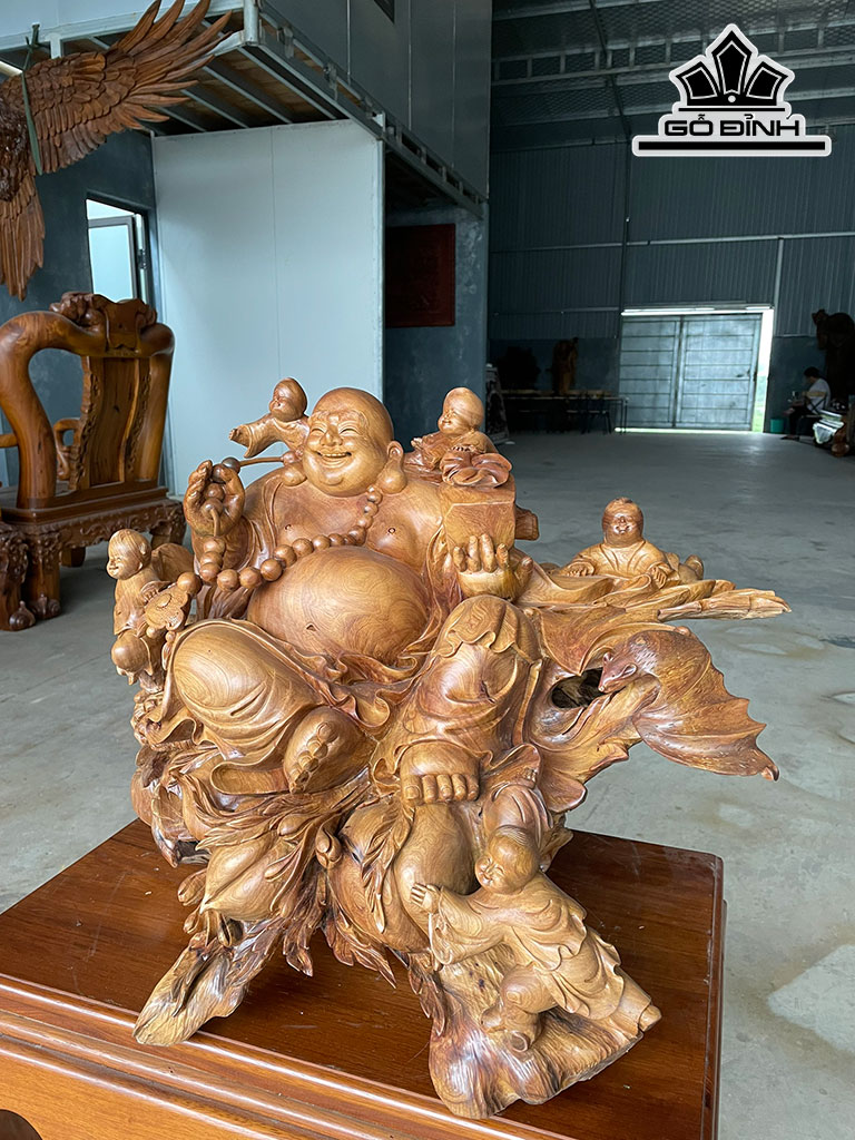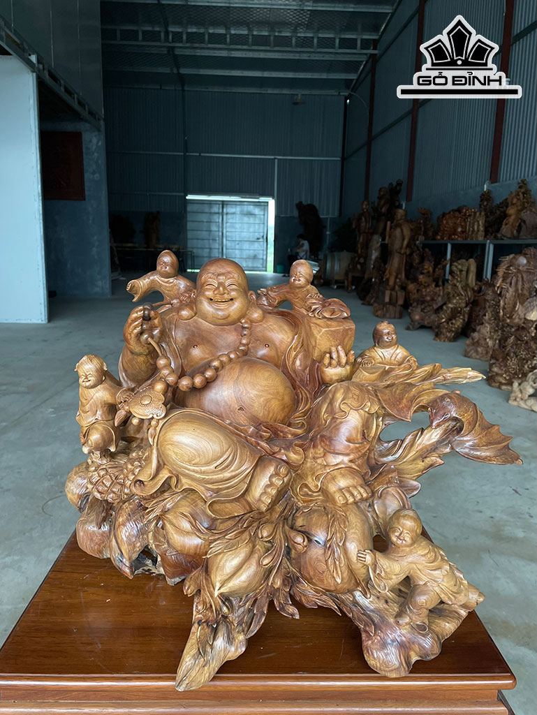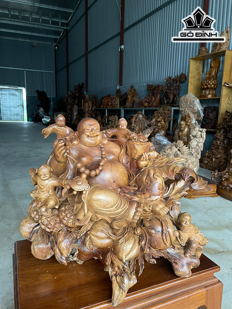 Tượng Phật Di Lặc Ngũ Phúc Gỗ Bách Xanh