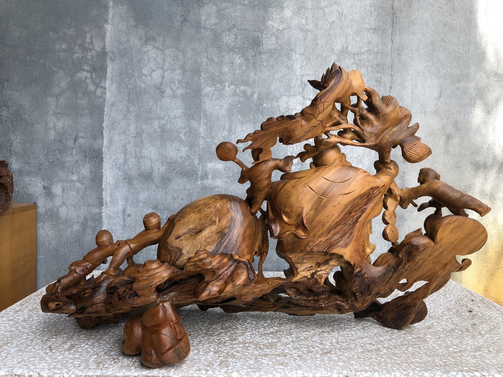 Tượng Phật Di Lặc Ngũ Phúc Gỗ Bách Xanh Cao 52 Ngang 86 Sâu 30 (cm)