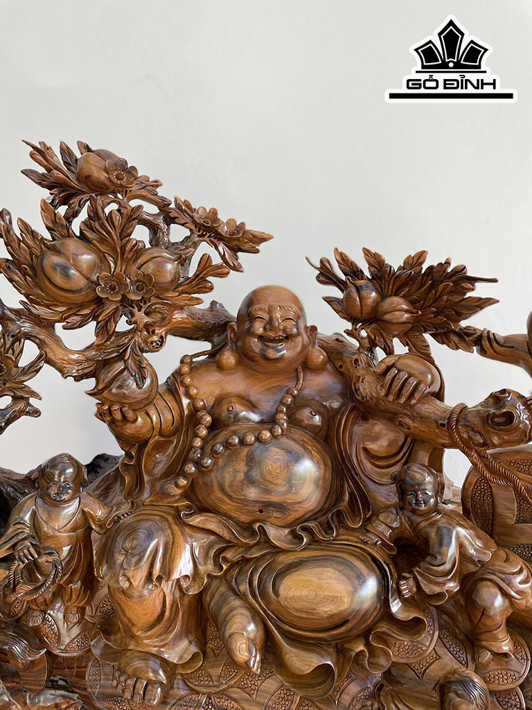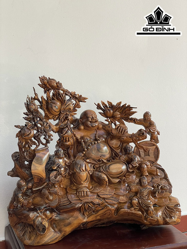 Tượng Phật Di Lặc Ngũ Phúc Gỗ Bách Xanh Cao 62 Ngang 68 Sâu 43 (cm)