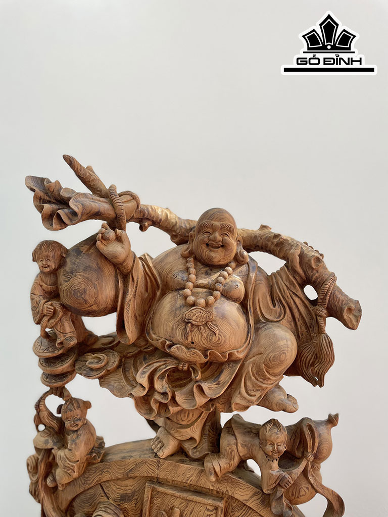 Tượng Phật Di Lặc Ngũ Phúc Gỗ Bách Xanh