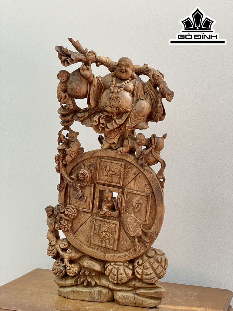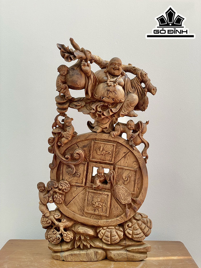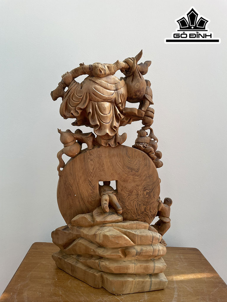 Tượng Phật Di Lặc Ngũ Phúc Gỗ Bách Xanh Cao 80 Ngang 43 Sâu 20 (cm)