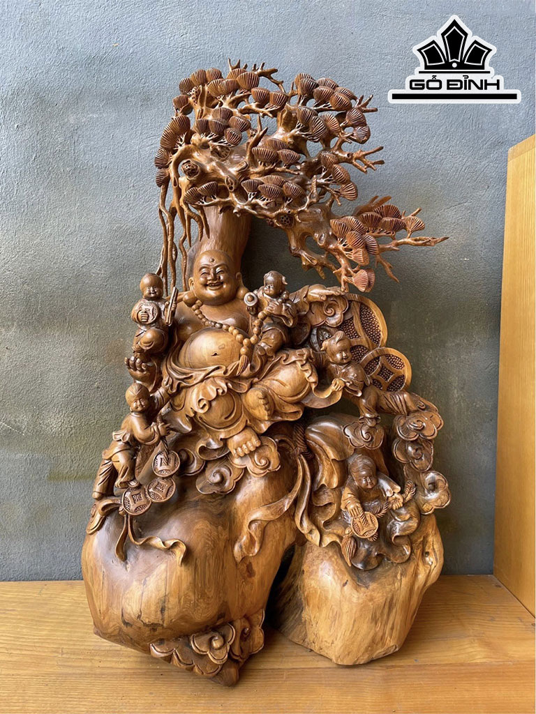 Tượng Phật Di Lặc Ngũ Phúc Gỗ Bách Xanh Cao 80 Ngang 46 Sâu 28 (cm)