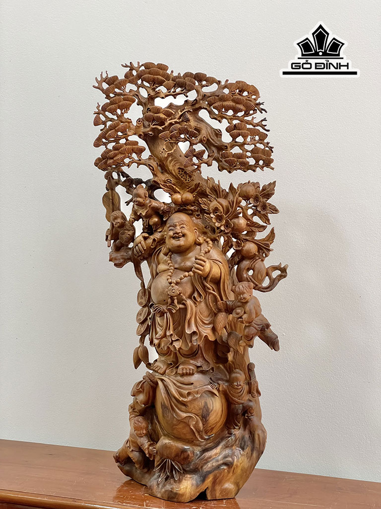 Tượng Phật Di Lặc Ngũ Phúc Gỗ Bách Xanh