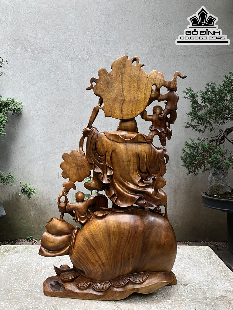 Tượng Phật Di Lặc Ngũ Phúc Gỗ Bách Xanh Cao 93 Ngang 35 Sâu 25