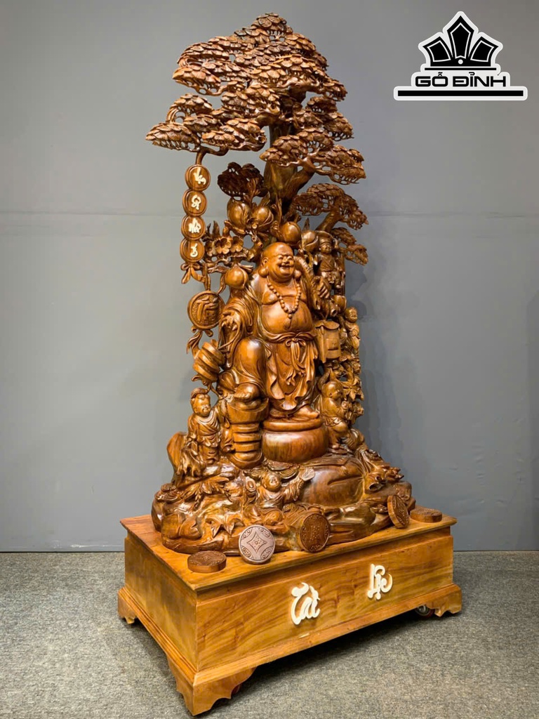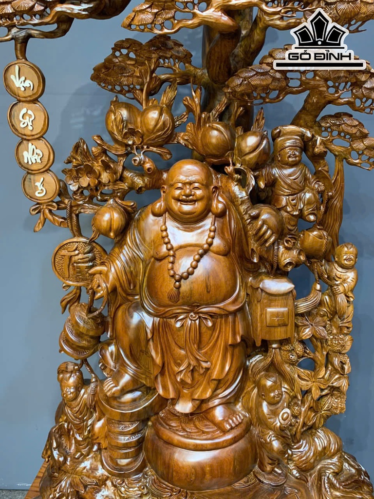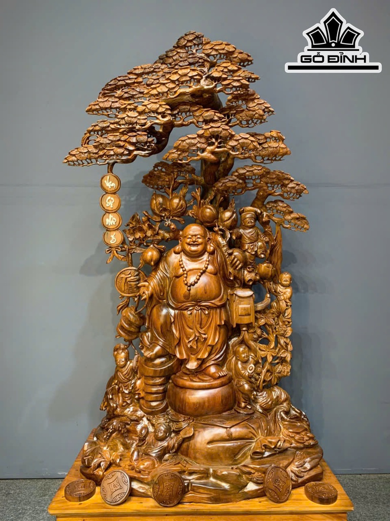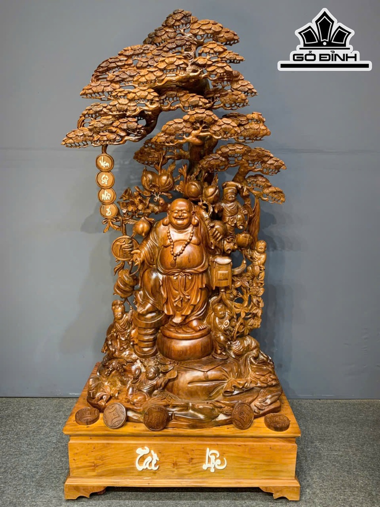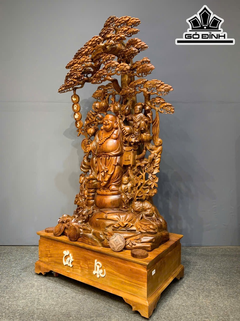 Tượng Phật Di Lặc Ngũ Phúc Gỗ Bách Xanh Cao Cả Kỷ 188 Ngang 95 Sâu 56 (cm) - Kỷ Cao 30 (cm)