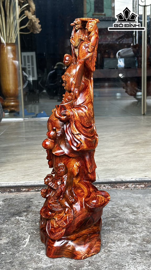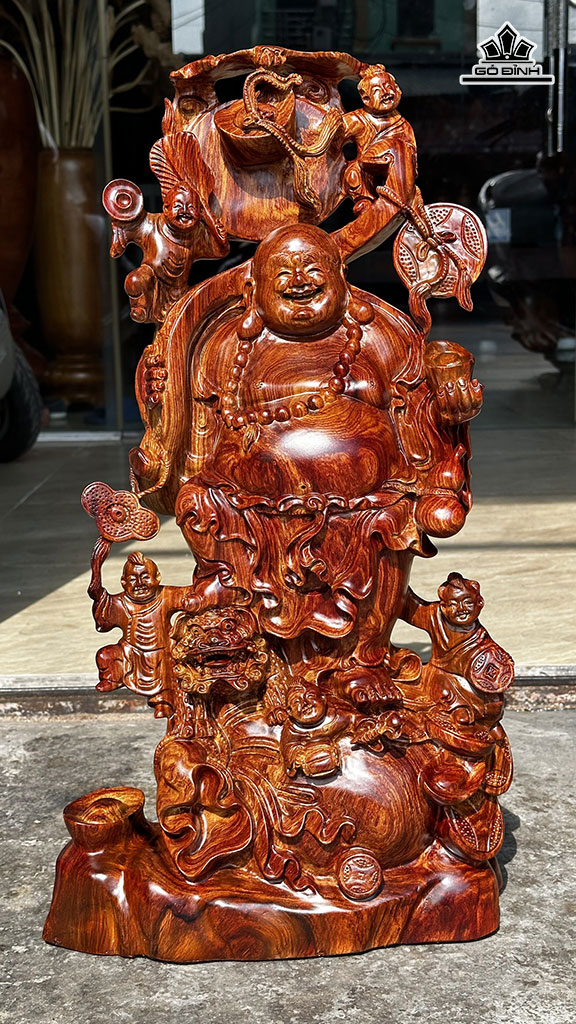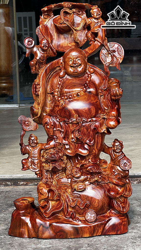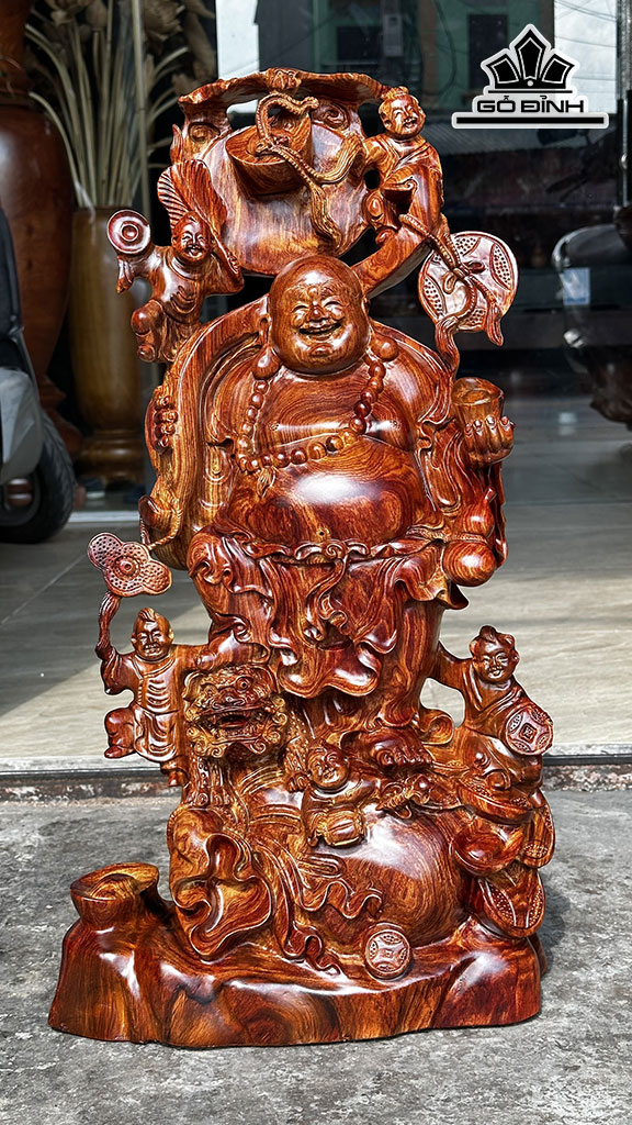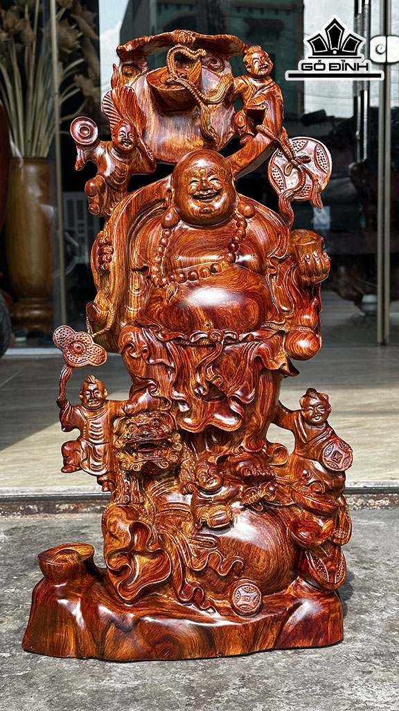 Tượng Phật Di Lặc Ngũ Phúc Gỗ Cẩm Cao 58 Ngang 32 Sâu 18 (cm)