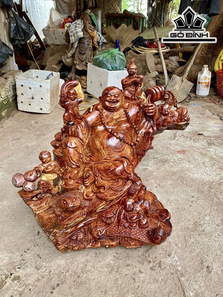 Tượng Phật Di Lặc Ngũ Phúc Gỗ Cẩm Cao 58 Ngang 52 Sâu 53 (cm)