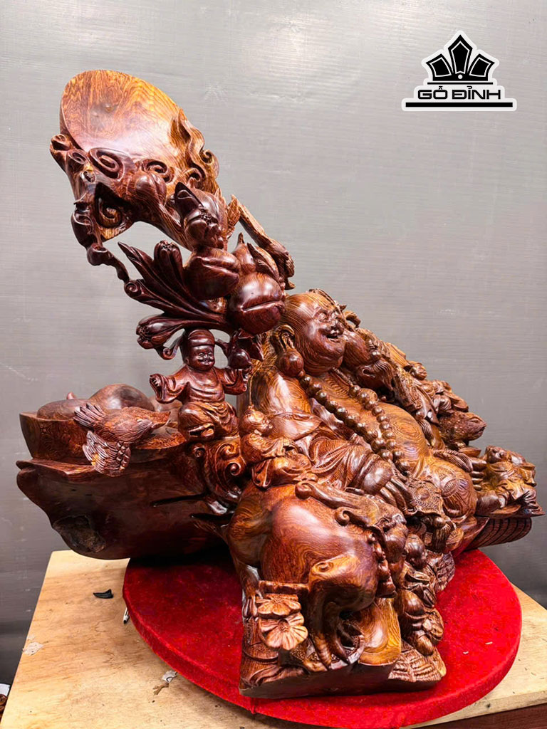 Tượng Phật Di Lặc Ngũ Phúc Gỗ Cẩm Cao 68 Ngang 86 Sâu 58 (cm)